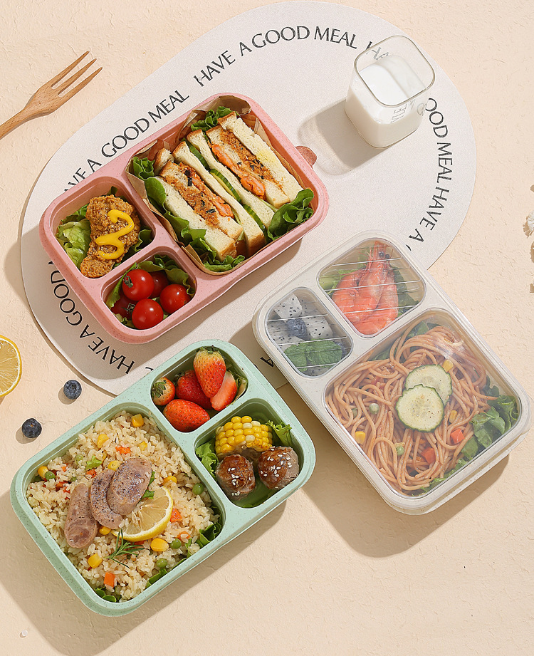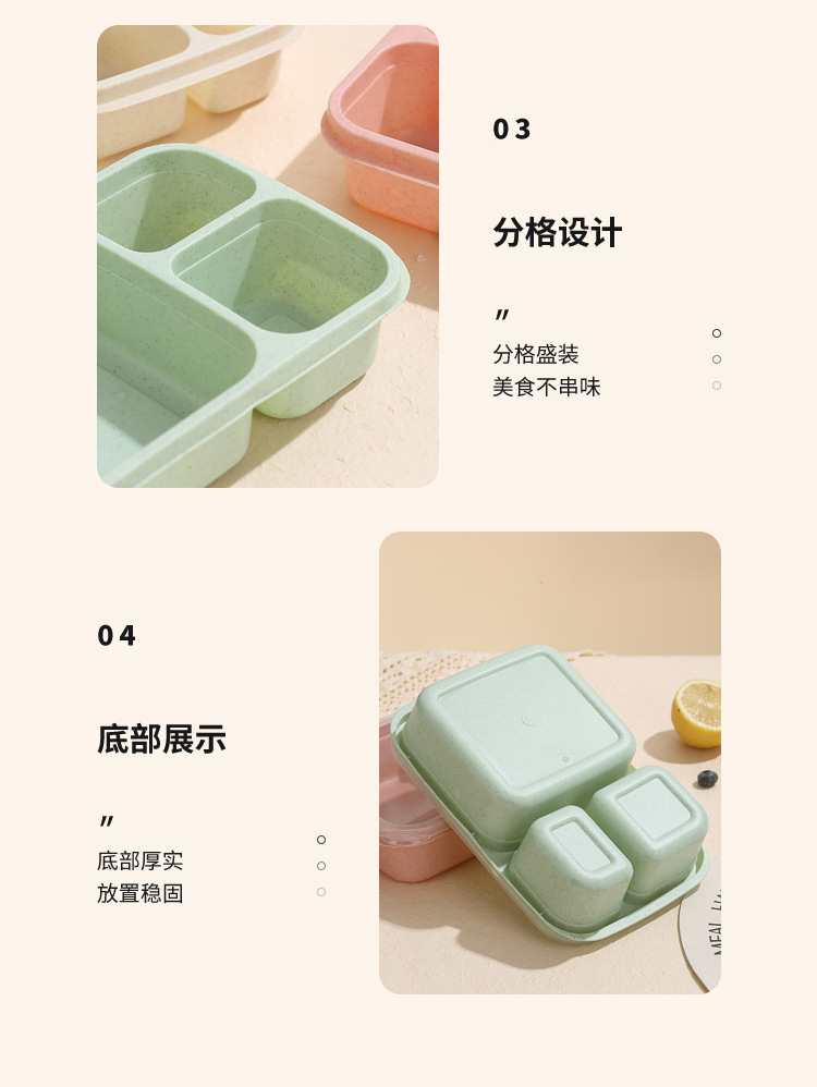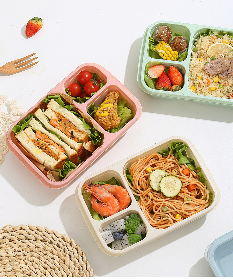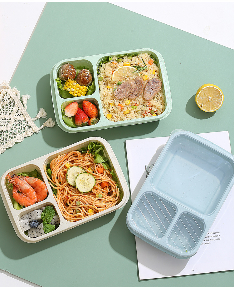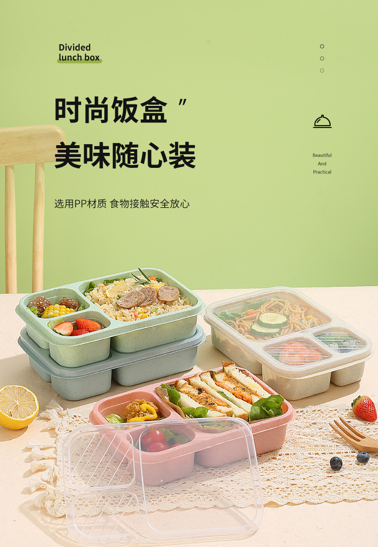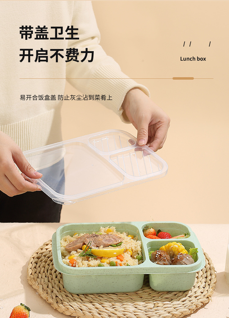 Younis小麦わら三分格弁当箱学生サラリーマンレストラン弁当箱屋外ポータブル弁当箱