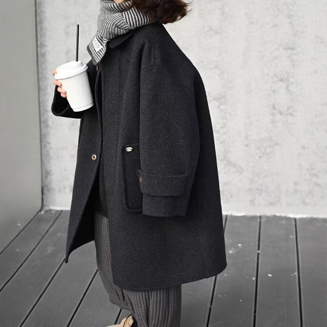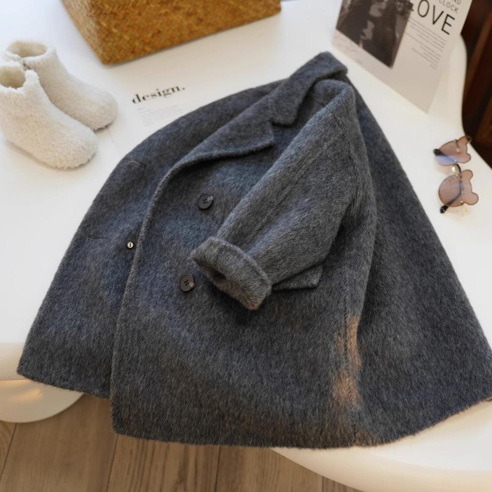 グレーのウールのコート
