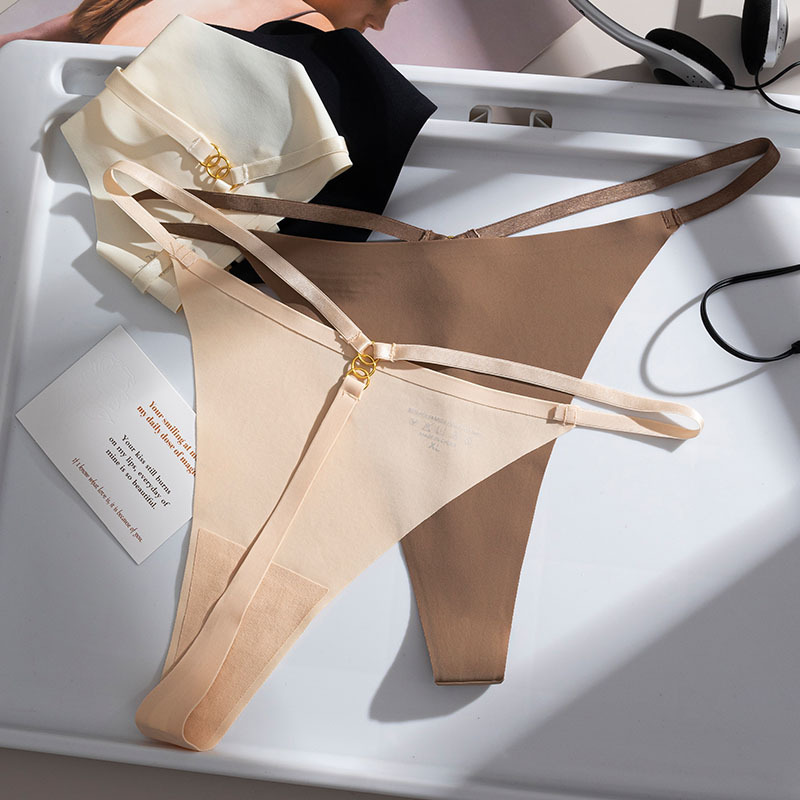 欧米のtズボンの一枚式のコンタクトレンズの女性の運動のフィットネスの細いベルトの痕跡のないt字のズボンの氷糸の対外貿易のt字のズボン