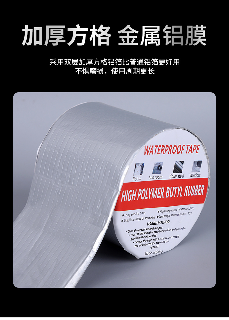 丁基胶带防水补漏自粘彩钢瓦屋顶管道密封修补卷材加厚