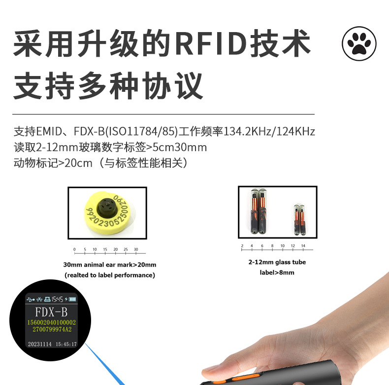 Q30宠物芯片扫描仪宠物证书手持读卡器RFID动物耳标采集身份识别