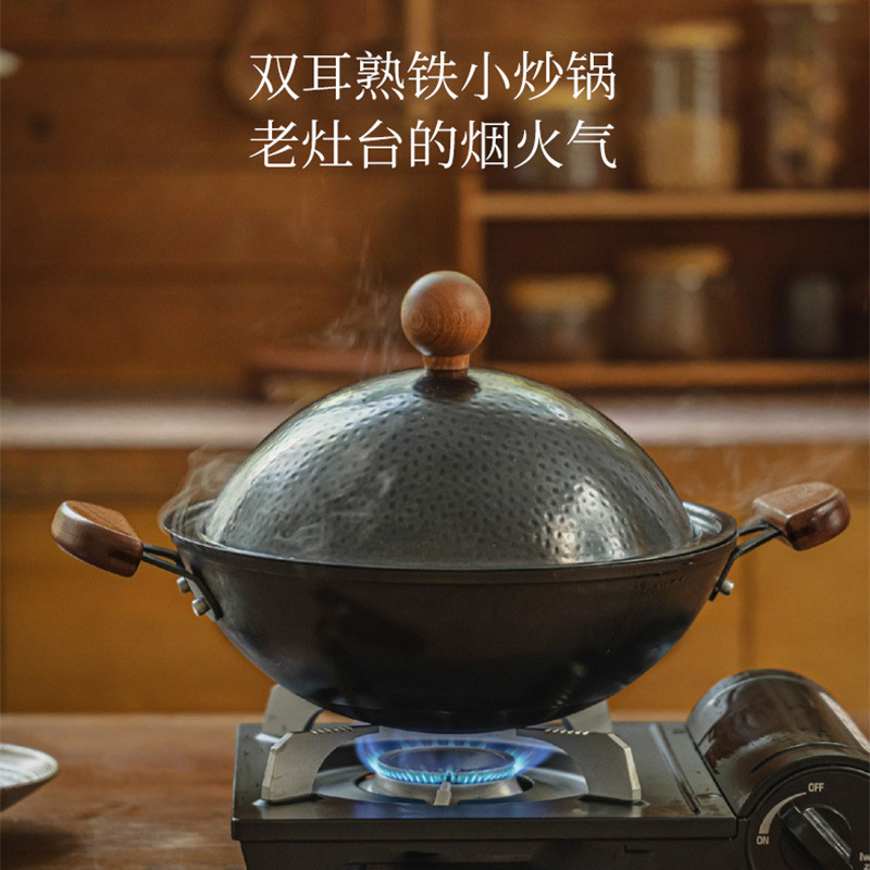 新款星球双耳无涂层炒锅铁锅家用老式爆炒锅通用炉灶平底炒锅批发