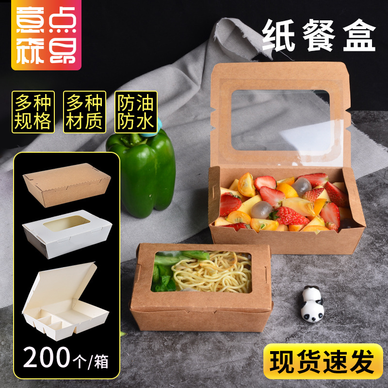 現物クラフト紙サラダ箱使い捨て果物すくい箱ファストフード箱の宅配箱は窓を開けて紙箱を見ることができる