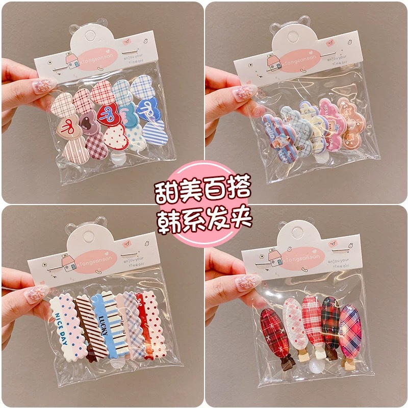 新しい長形のプリントの蝶結びのアヒルの口は子供の甘い気質のヘアピンの少女の心のカードの縁を挟んで髪飾りの卸売りを挟みます。