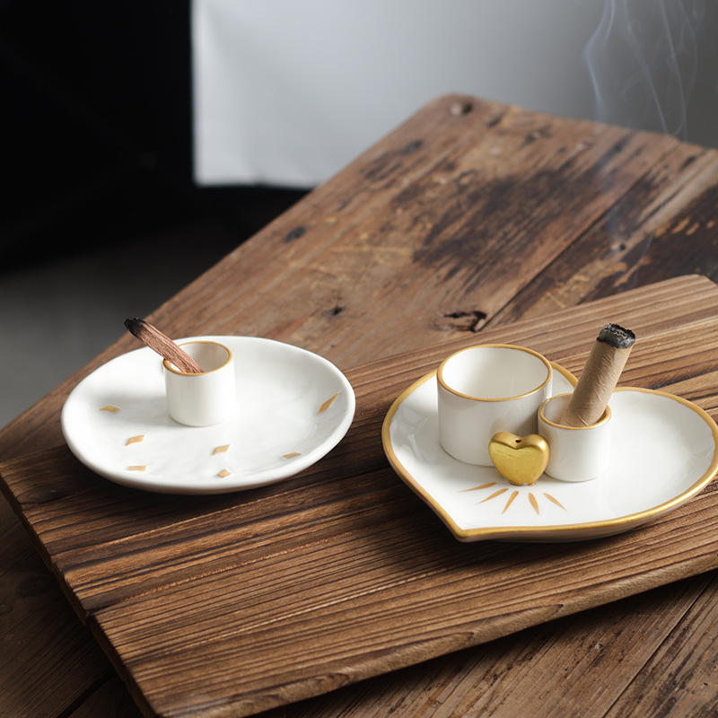 陶磁器家庭用白檀炉三足塔香盤香線香座窯変白磁小香炉多型現物卸売り