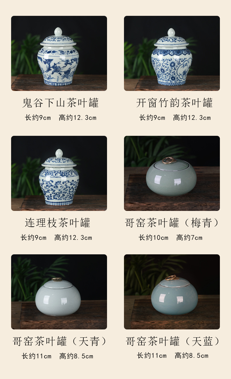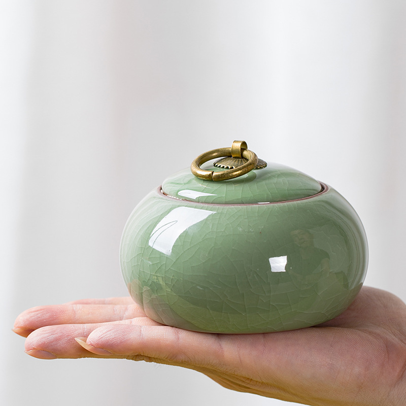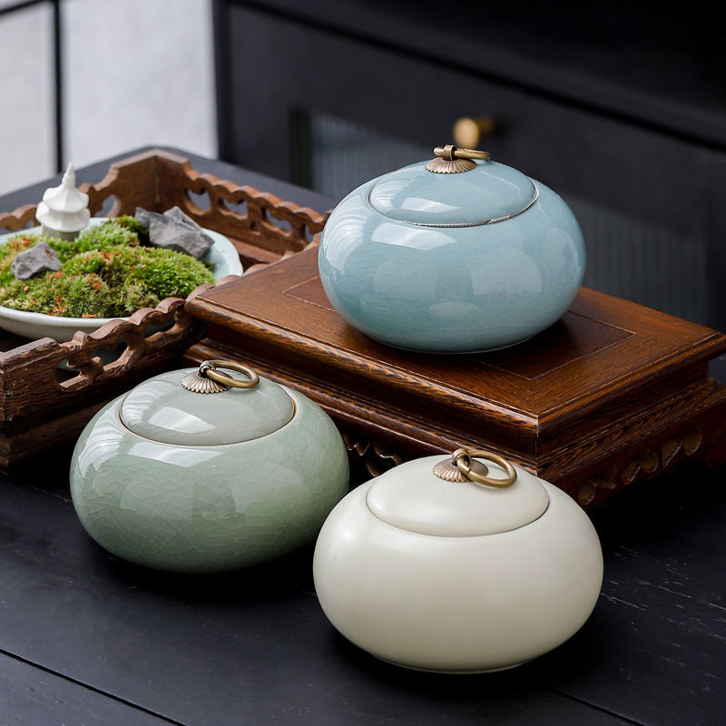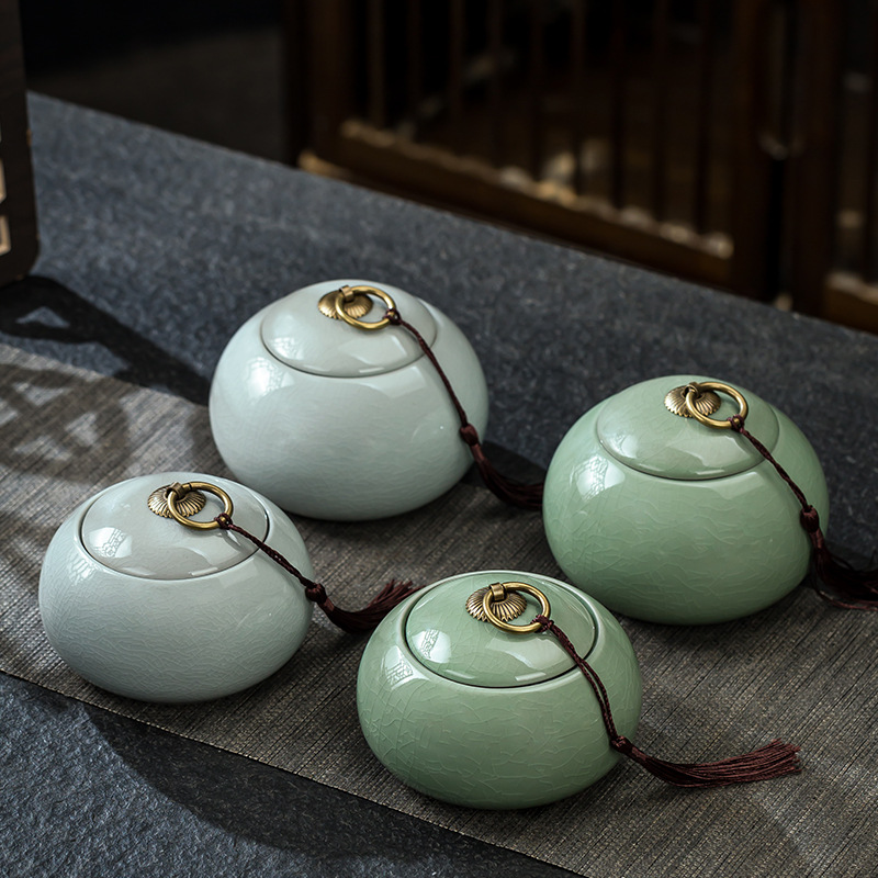 哥窯汝窯竜泉青磁密封茶葉缶梅子青氷裂陶磁器貯蔵茶葉薬草磁器缶茶箱