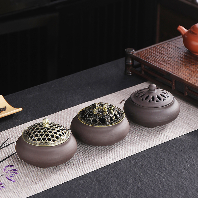 中国式陶磁器香炉塔香盤香炉創意紫砂三足供養ホノルル線香座現物速発