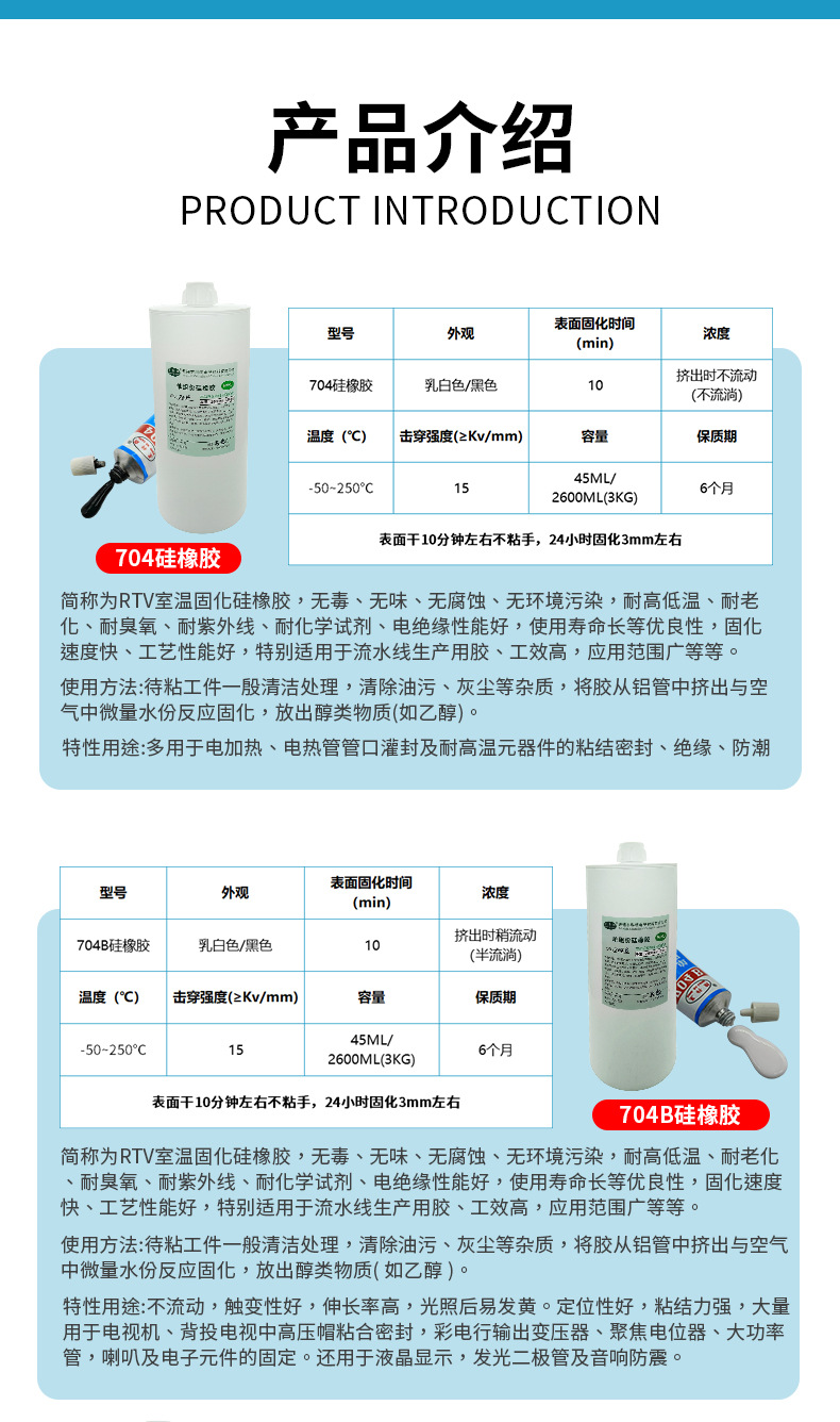 704 シリコーンゴム屋外照明器具シール防水電子部品固定絶縁高温耐性シール接着剤
