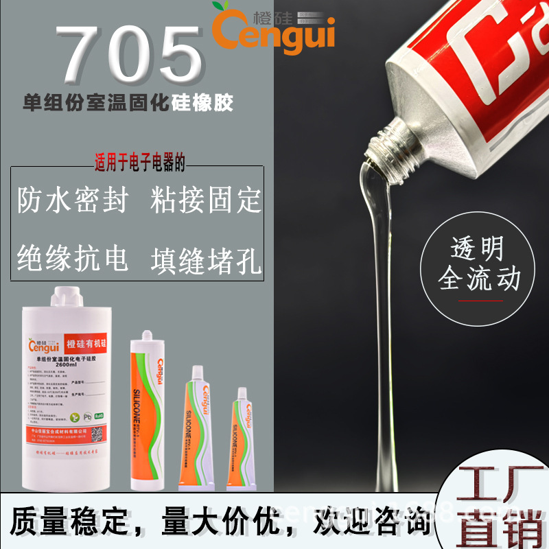 705 シリコーンゴム完全透明回路基板電子部品絶縁シーリング照明器具シーリング防水シリコーン接着剤 RTV