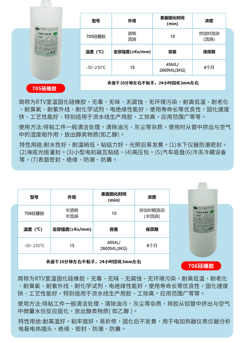 704シリコンゴム705透明706半透室温硬化シール電子電源接着固定シール剤