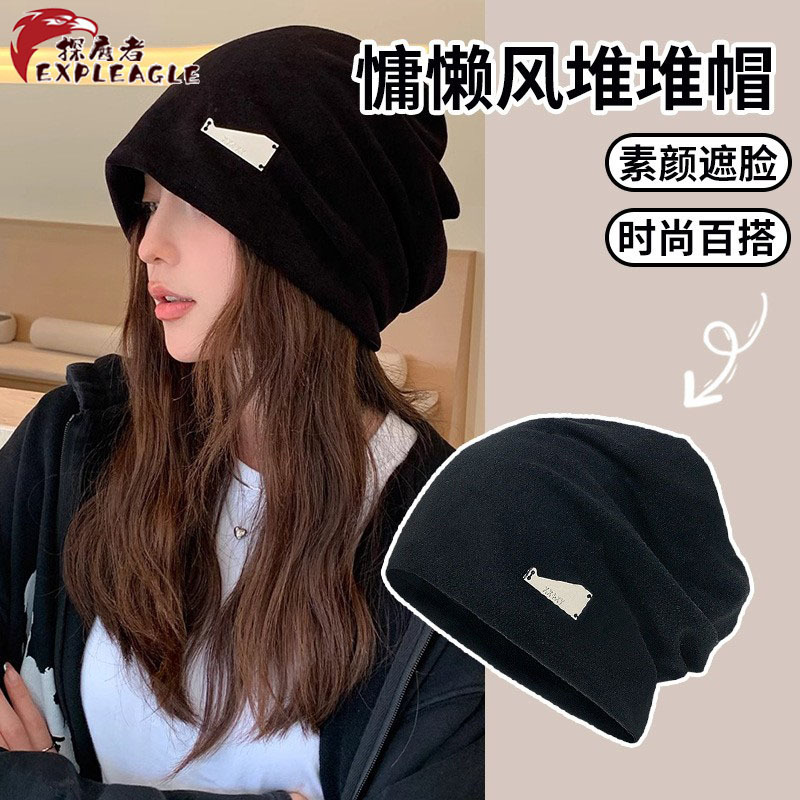 慵懒风大头围堆堆帽女秋冬季时尚套头月子帽冷帽显脸小包头帽子女