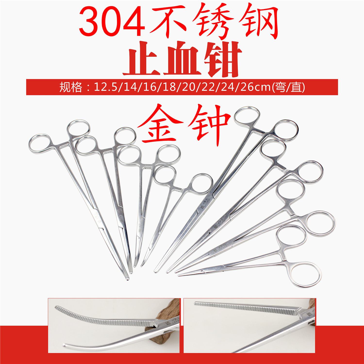 上海金鐘医療機器工場医療用止血鉗子304ステンレス血管鉗子抜火缶抜毛