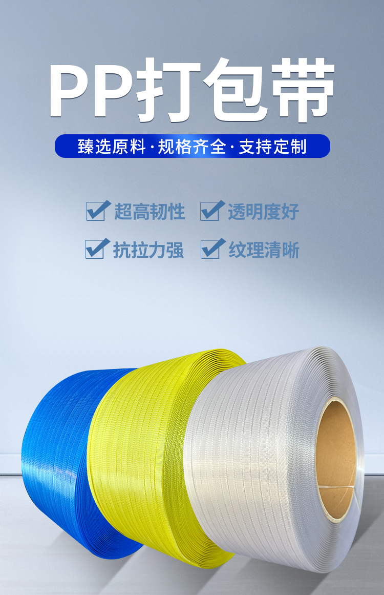 Ppパッキングベルト梱包機専用ホットメルト透明全自動パッキングベルトpp手動手動パッキングベルト卸売り
