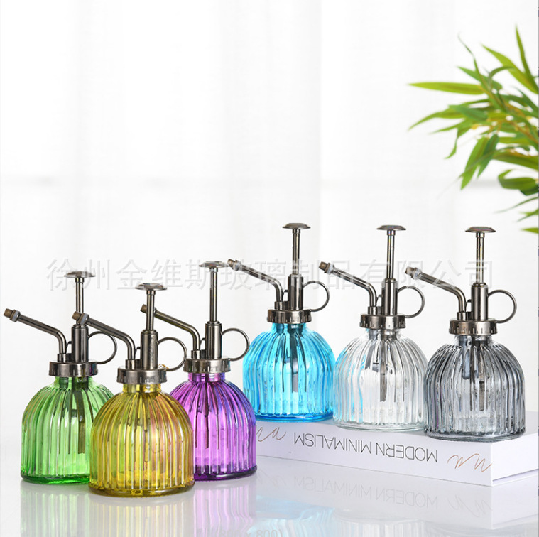 Jws手押し式レトロ水筒園芸水筒ガラス縦紋水筒圧力ノズル消毒花