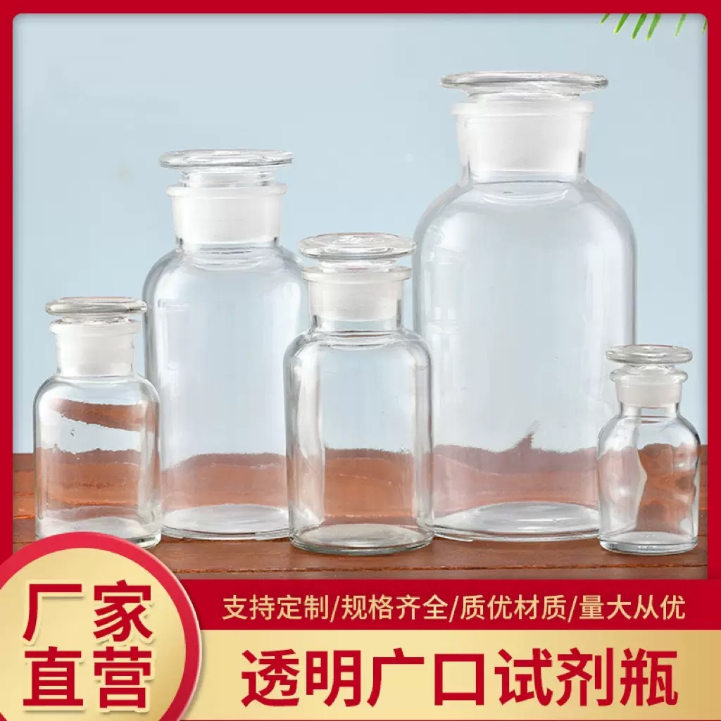 透明ガラス試薬瓶広口研口厚さ実験室薬品サンプリング瓶化学遮光薬剤密封瓶