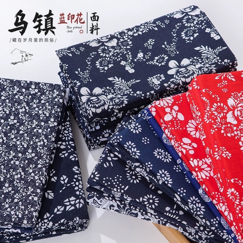 烏鎮藍プリント布化繊布地民族風壁布地農家楽民宿装飾カーテンテーブルクロス