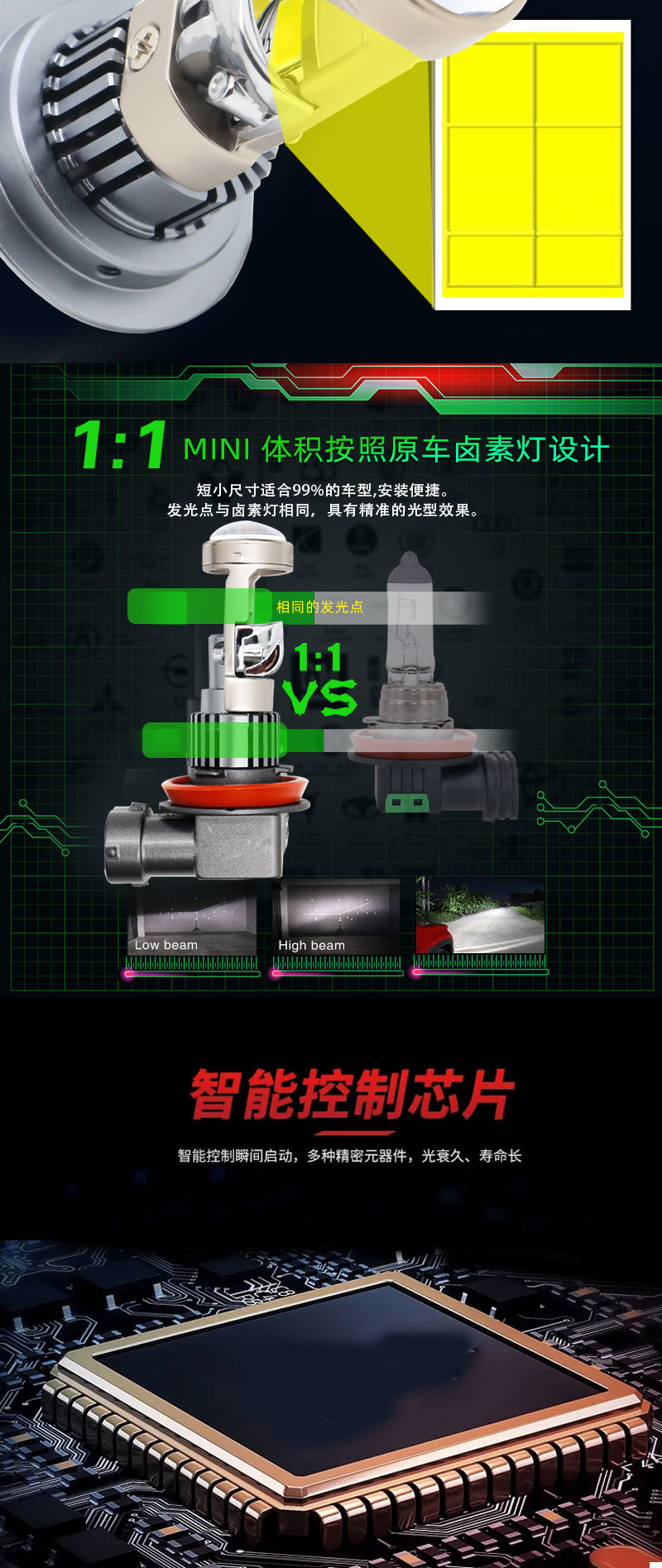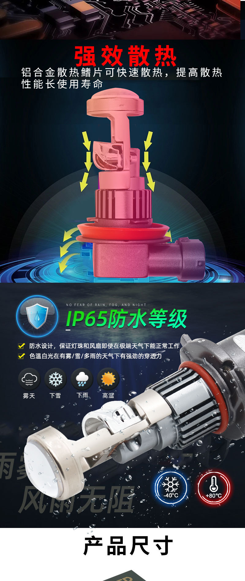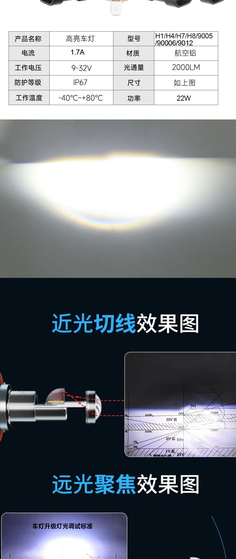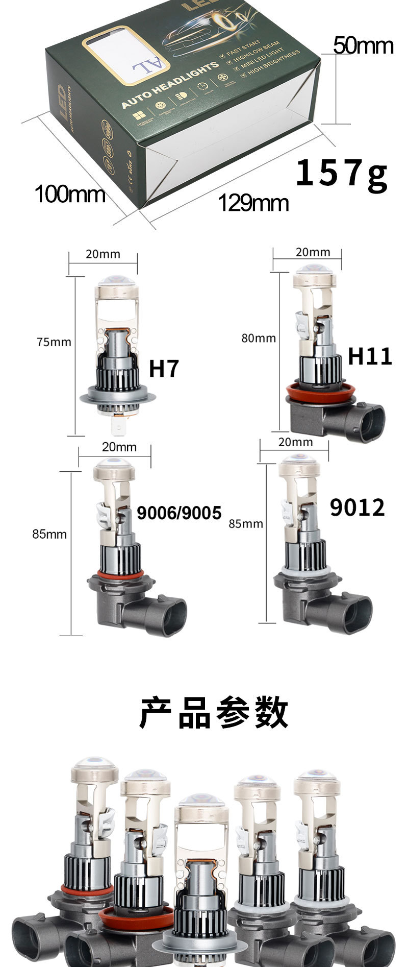 驱动A80led汽车透镜LED大灯鱼眼灯双光9005h7h11车灯聚光跨境专供