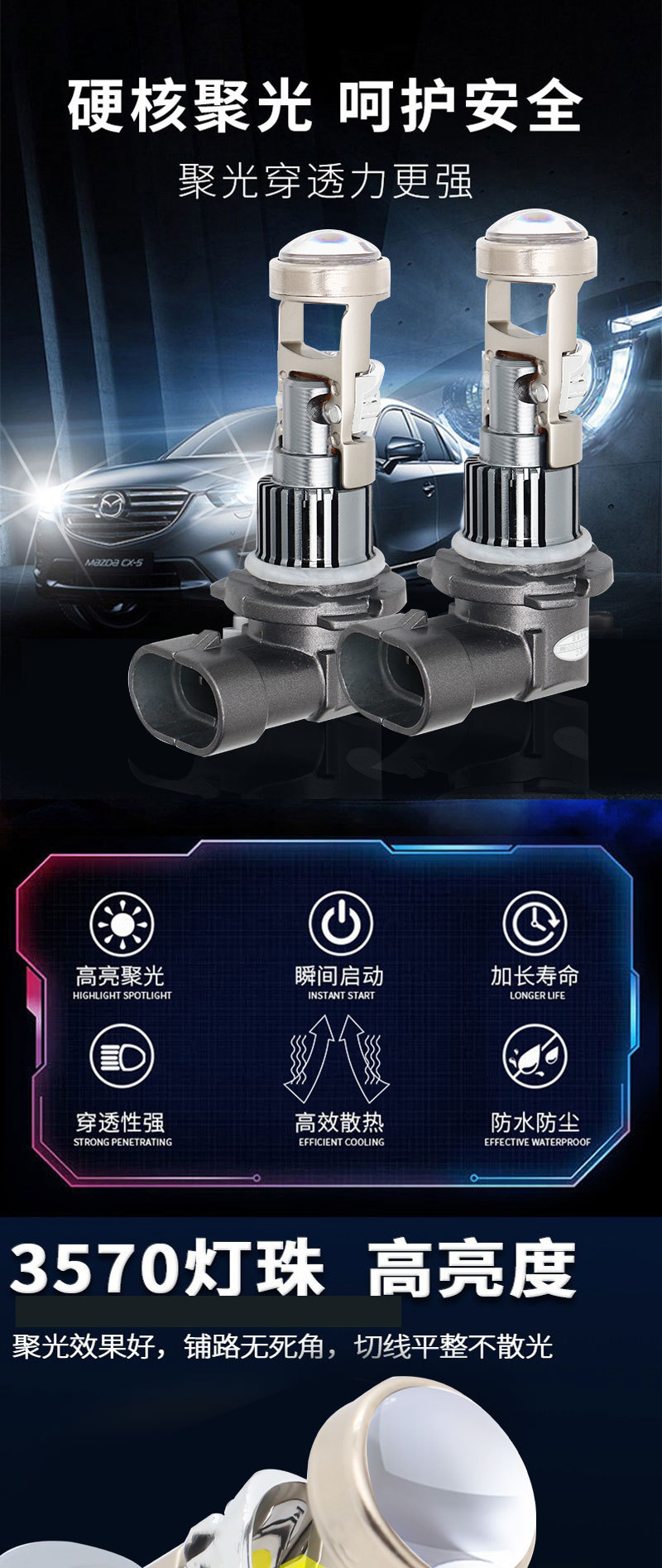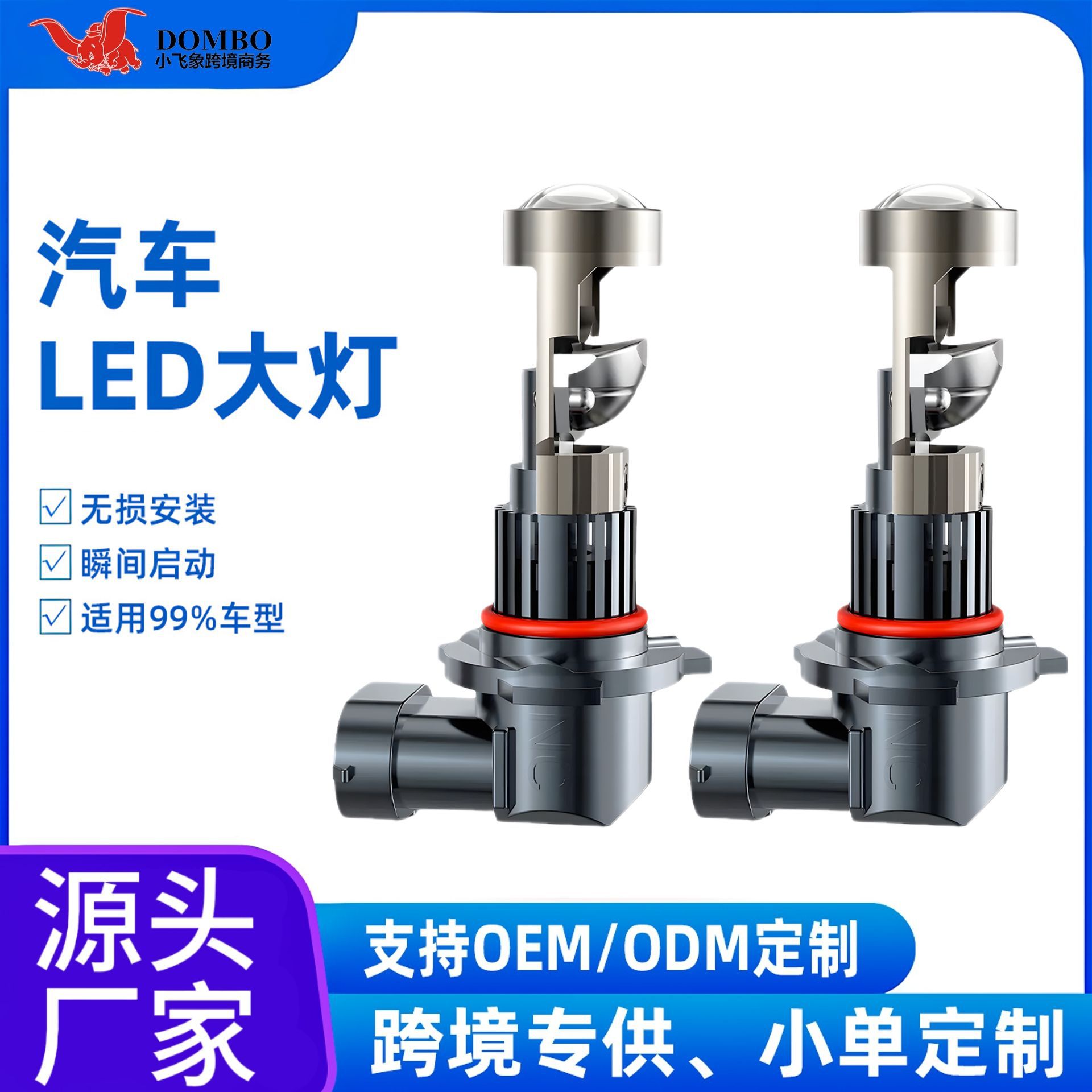 外贸跨境9005 9006直插一体汽车led灯透镜led车灯泡改装高亮聚光