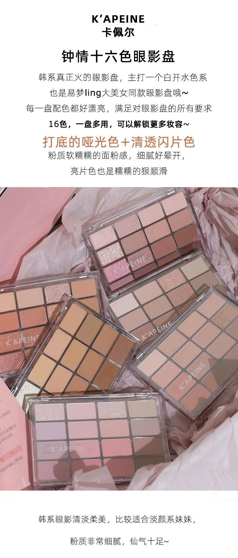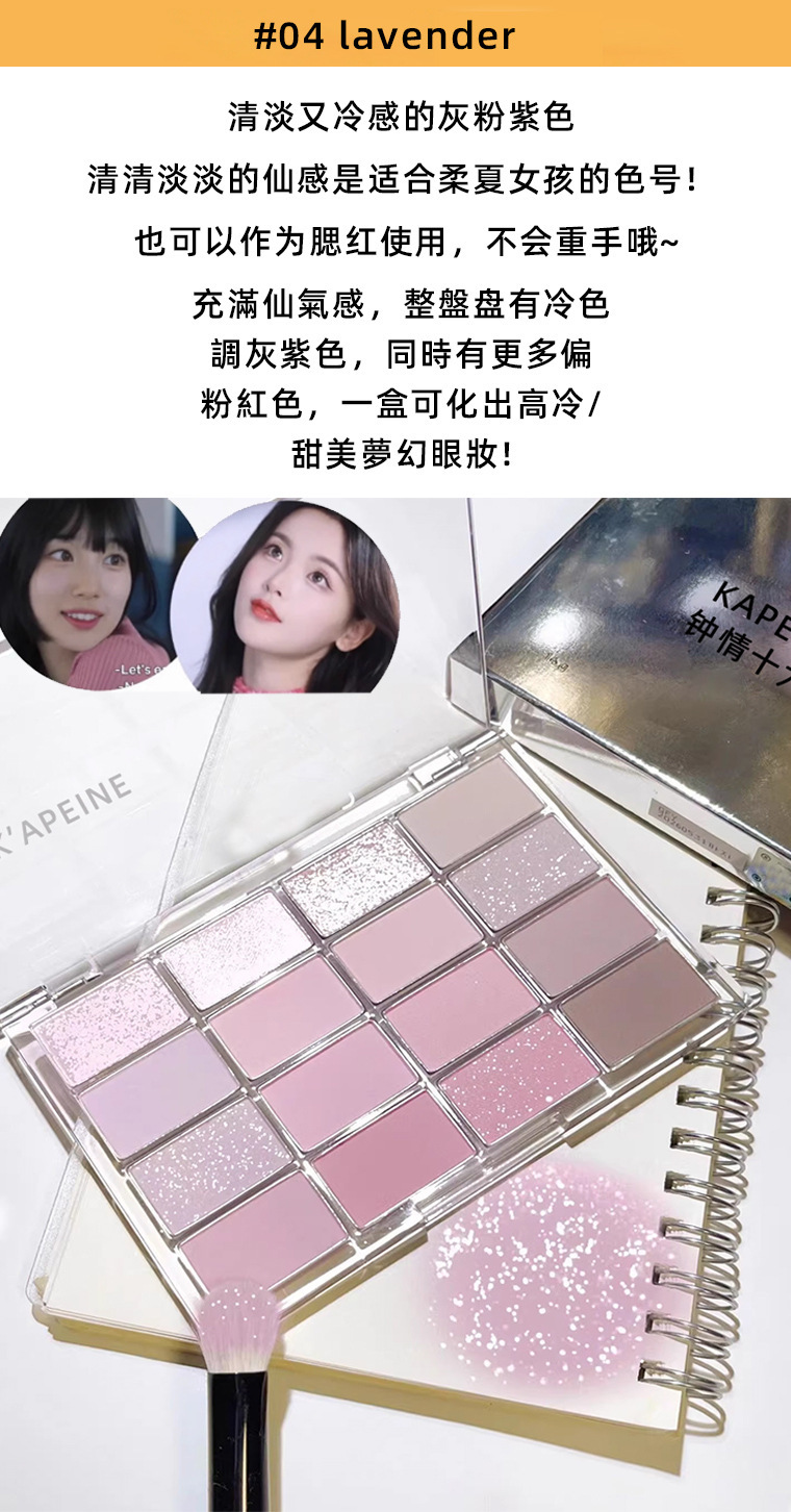 卡佩尔钟情十六色眼影盘低饱和珠光哑光卧蚕提亮粉棕大地色眼影