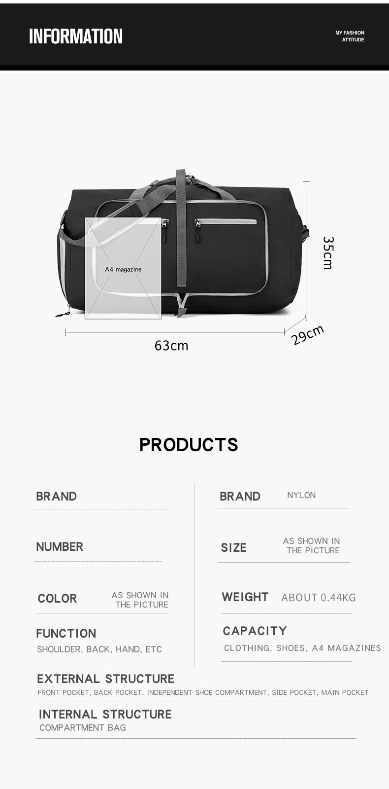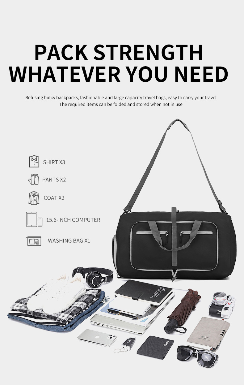男女折り畳み可能なカジュアルシンプルな旅行バッグ大容量バッグ