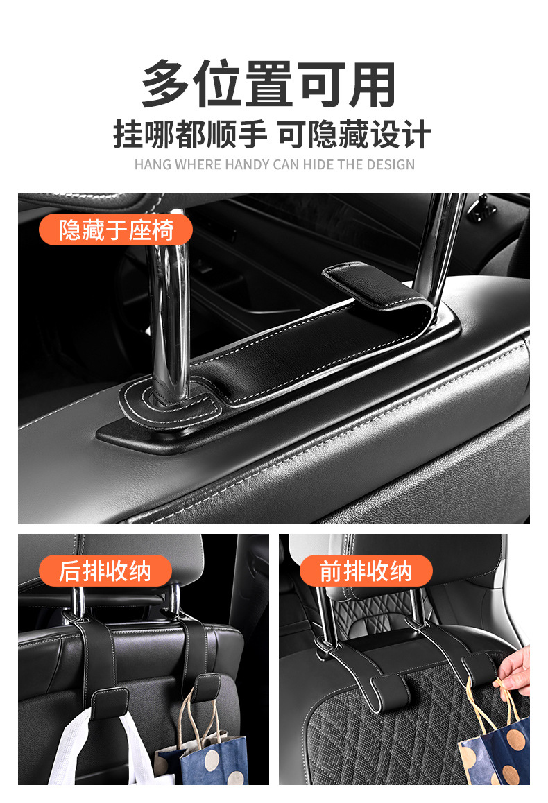 汽车座椅背挂钩翻毛皮后排收纳置物车载挂钩金属双钩车内专用挂钩