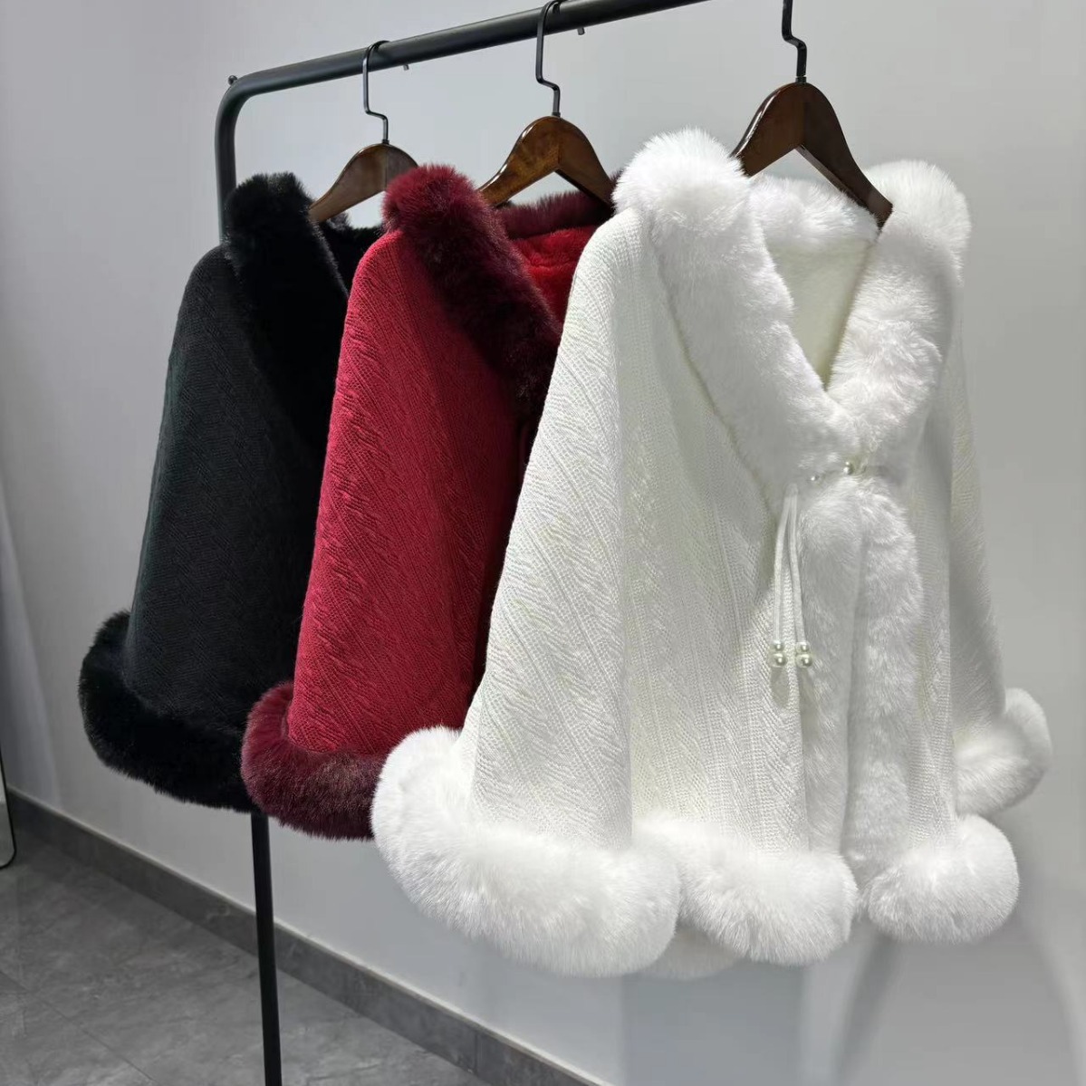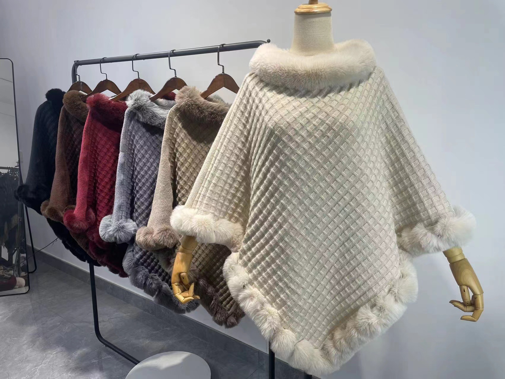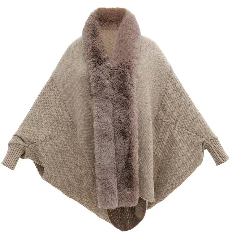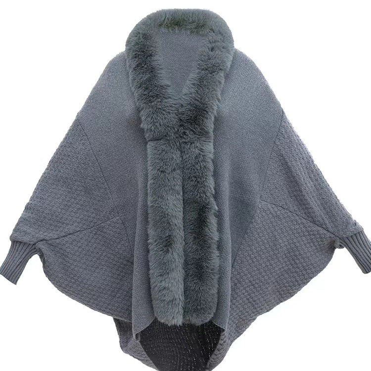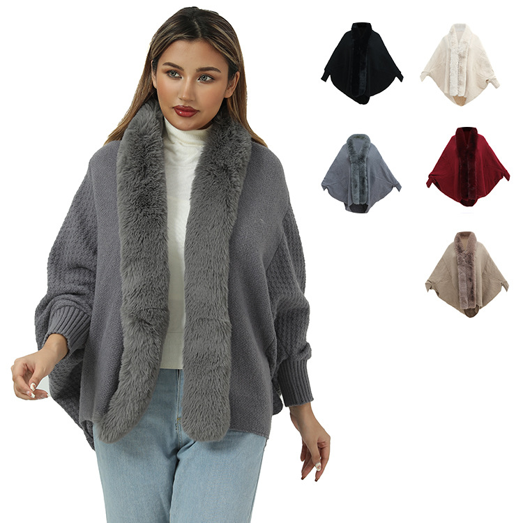 秋と冬の新しいファッションルーズファー襟バットスリーブニットマントカーディガンショールアウターマントジャケット女性用