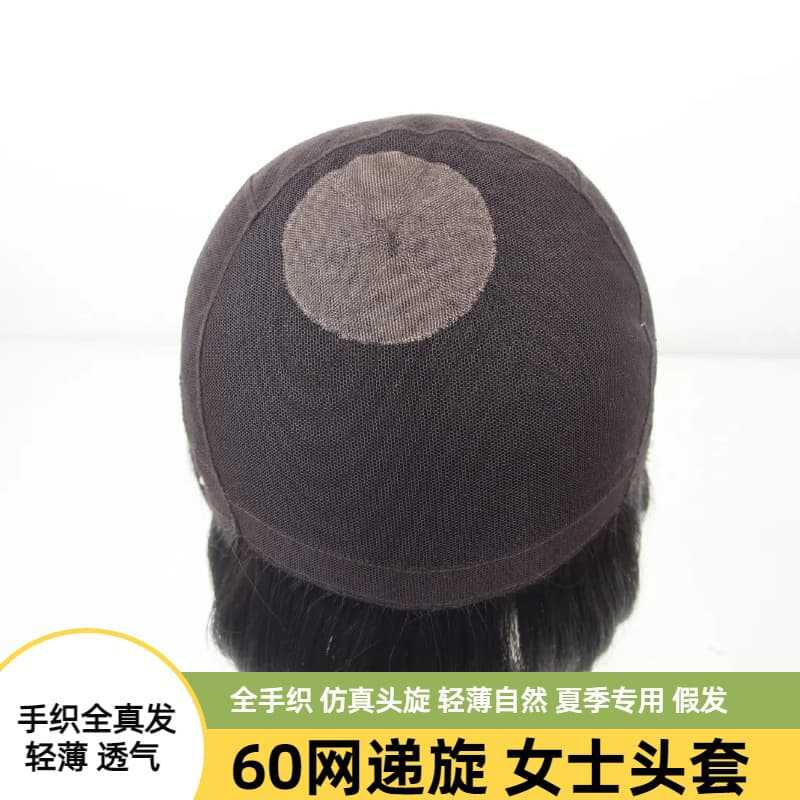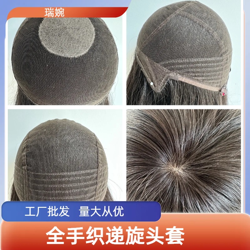 递旋头套厂家批发辫发真人发丝手织网底轻薄透气头套女士假发毛坯