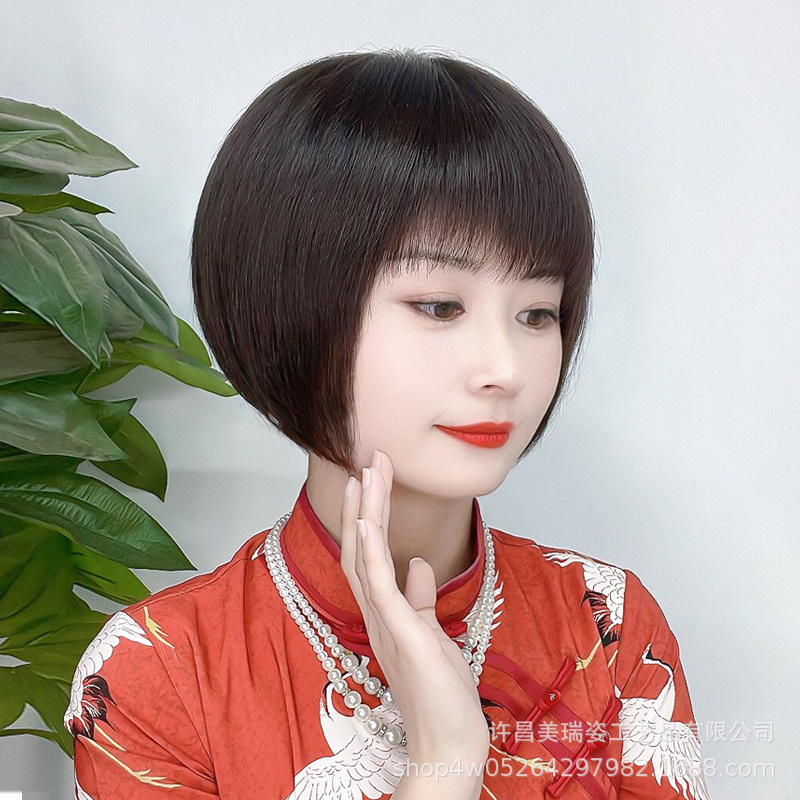 厂家直发全真人发假发时尚中老年妈妈短发减龄大头皮波波头假发套