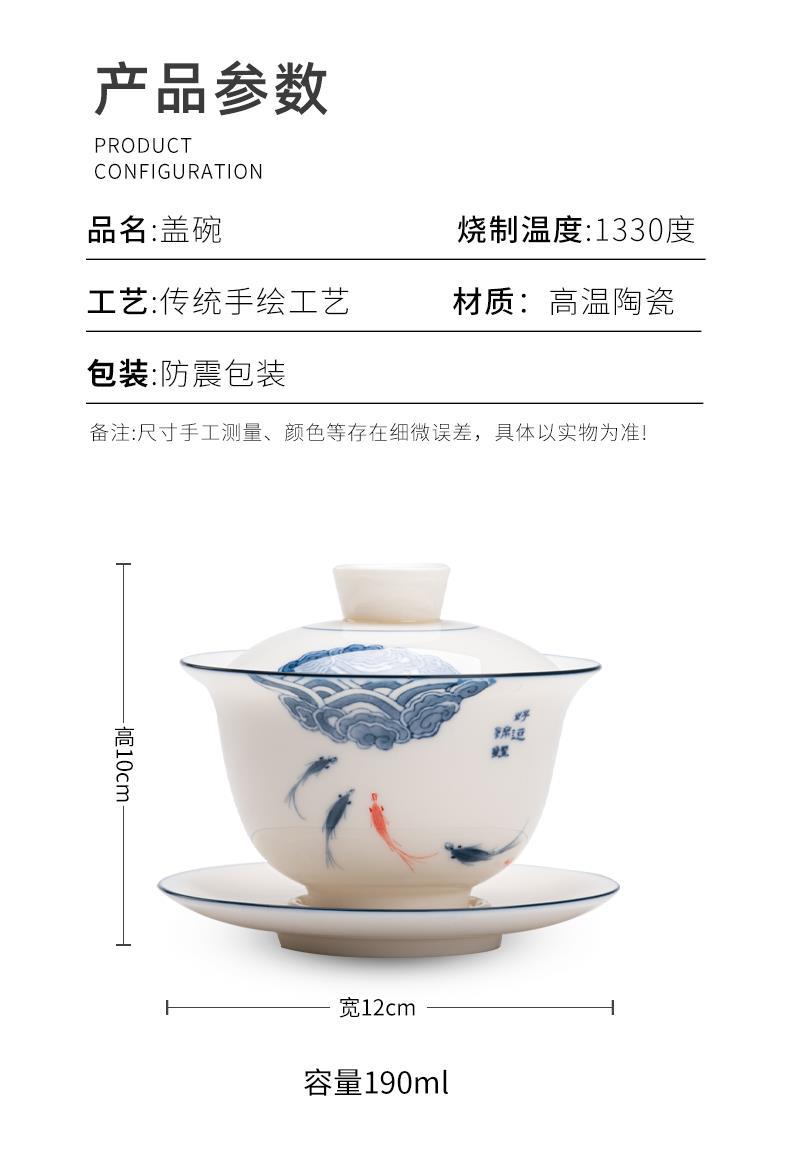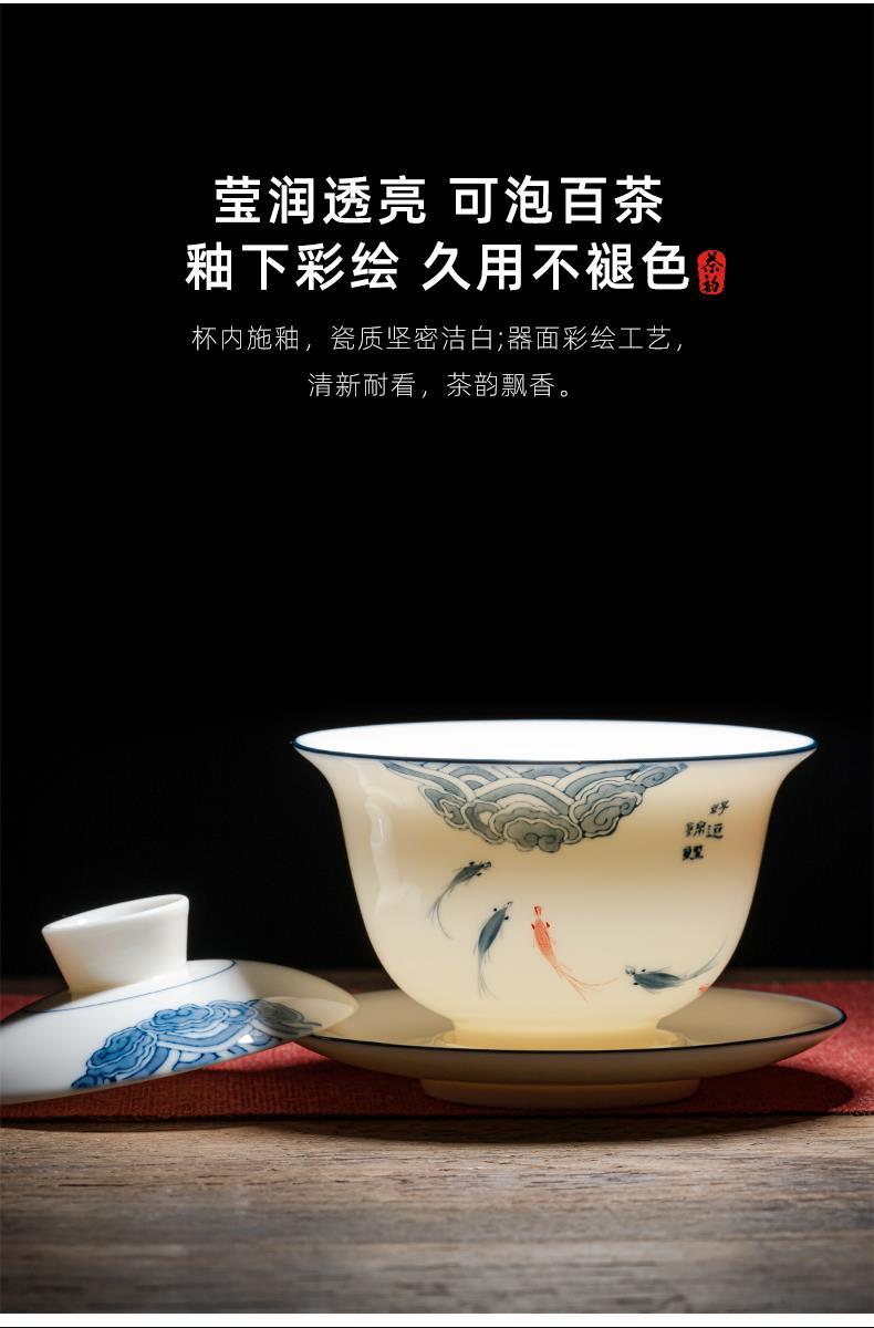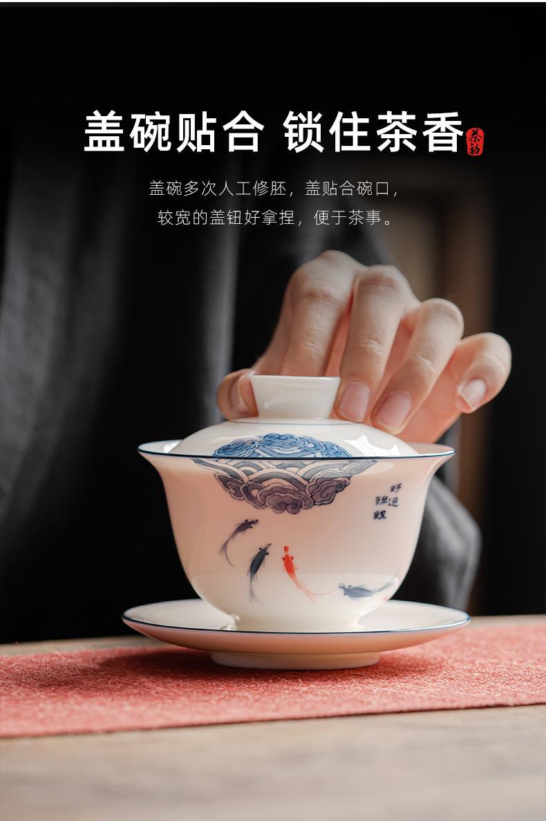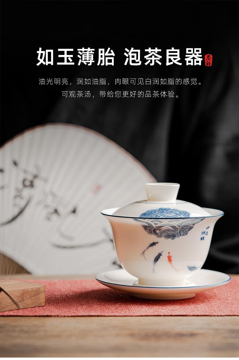 羊脂玉の手描き三才蓋碗の高級家庭用は手を温めません。