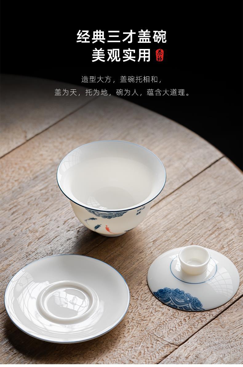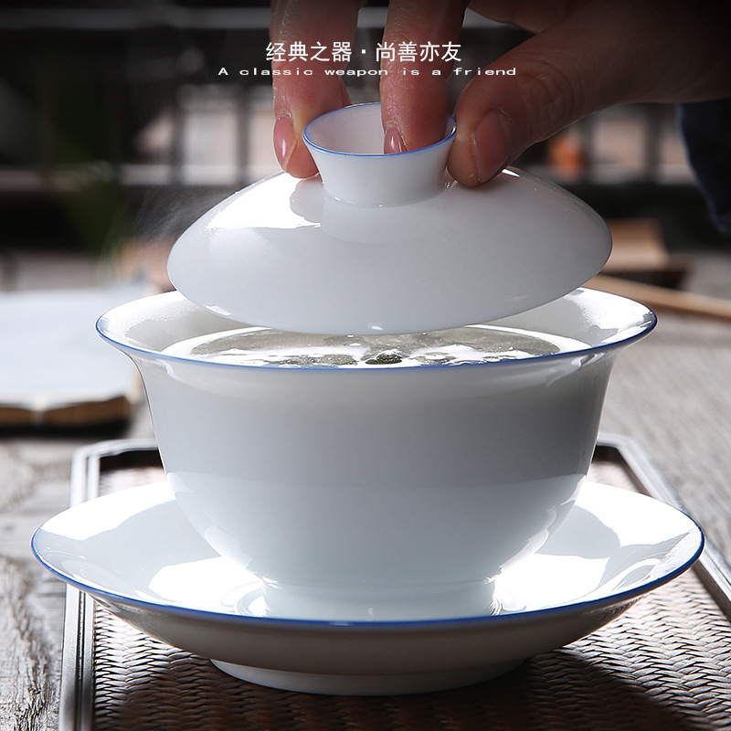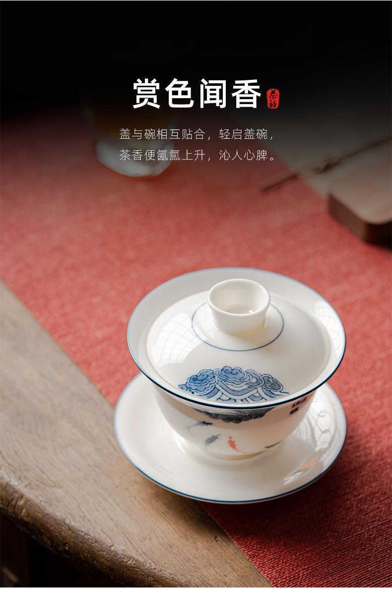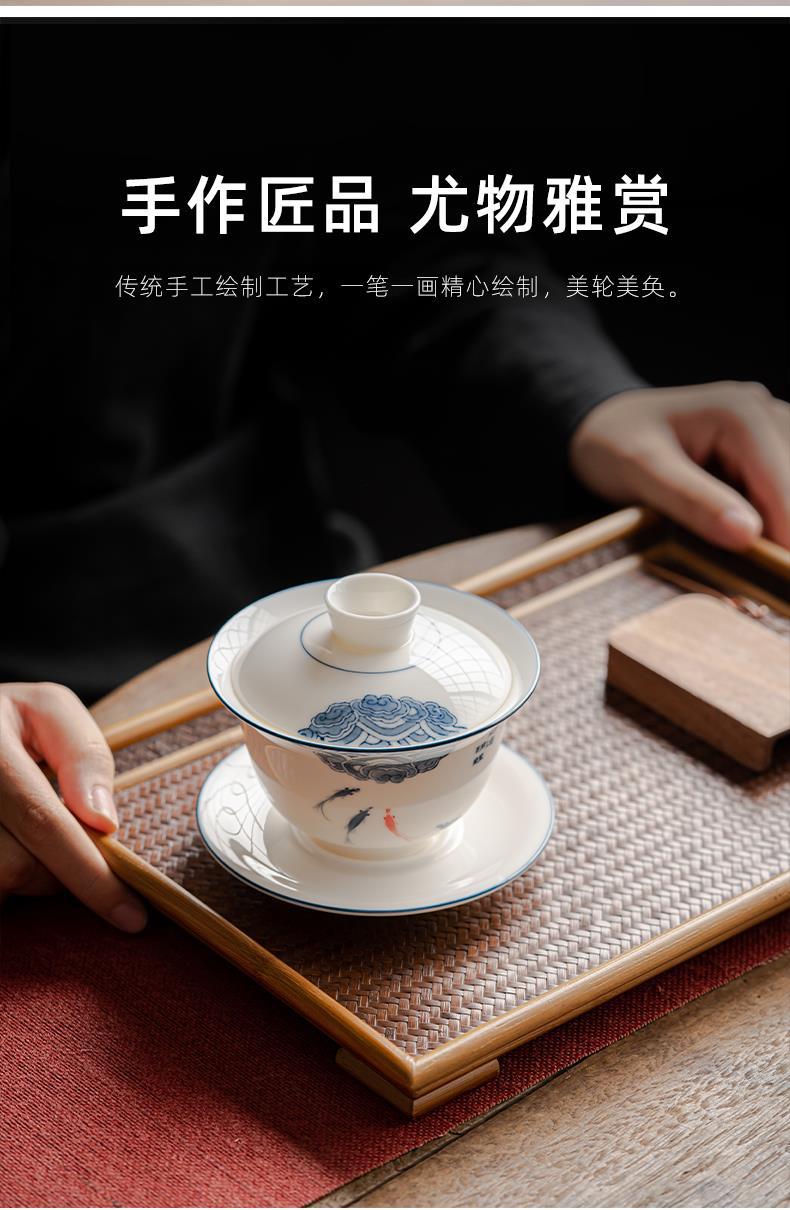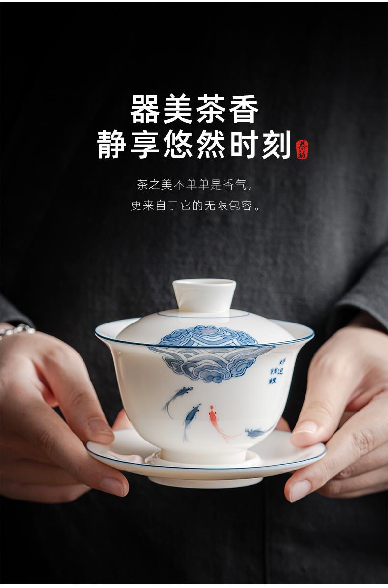 羊脂玉の手描き三才蓋碗の高級家庭用は手を温めません。