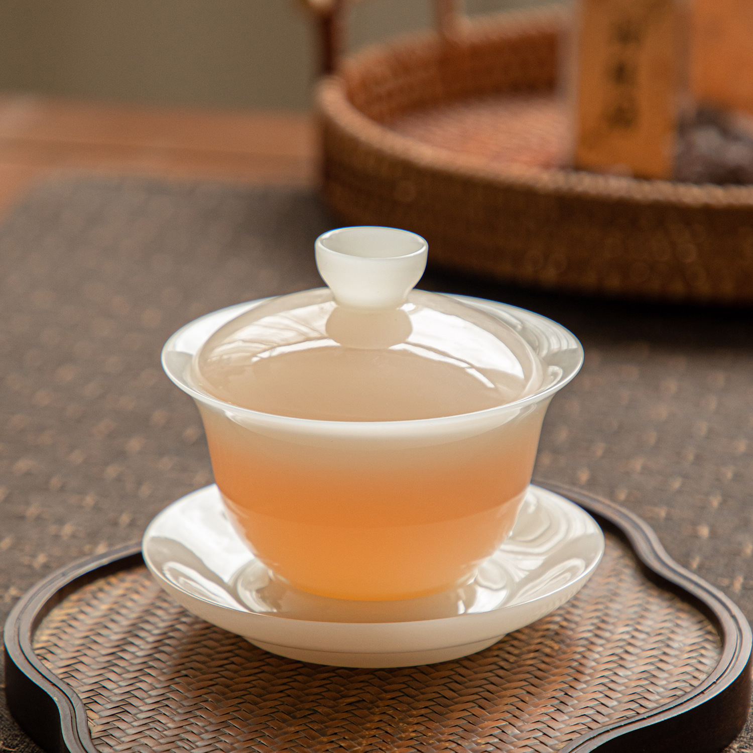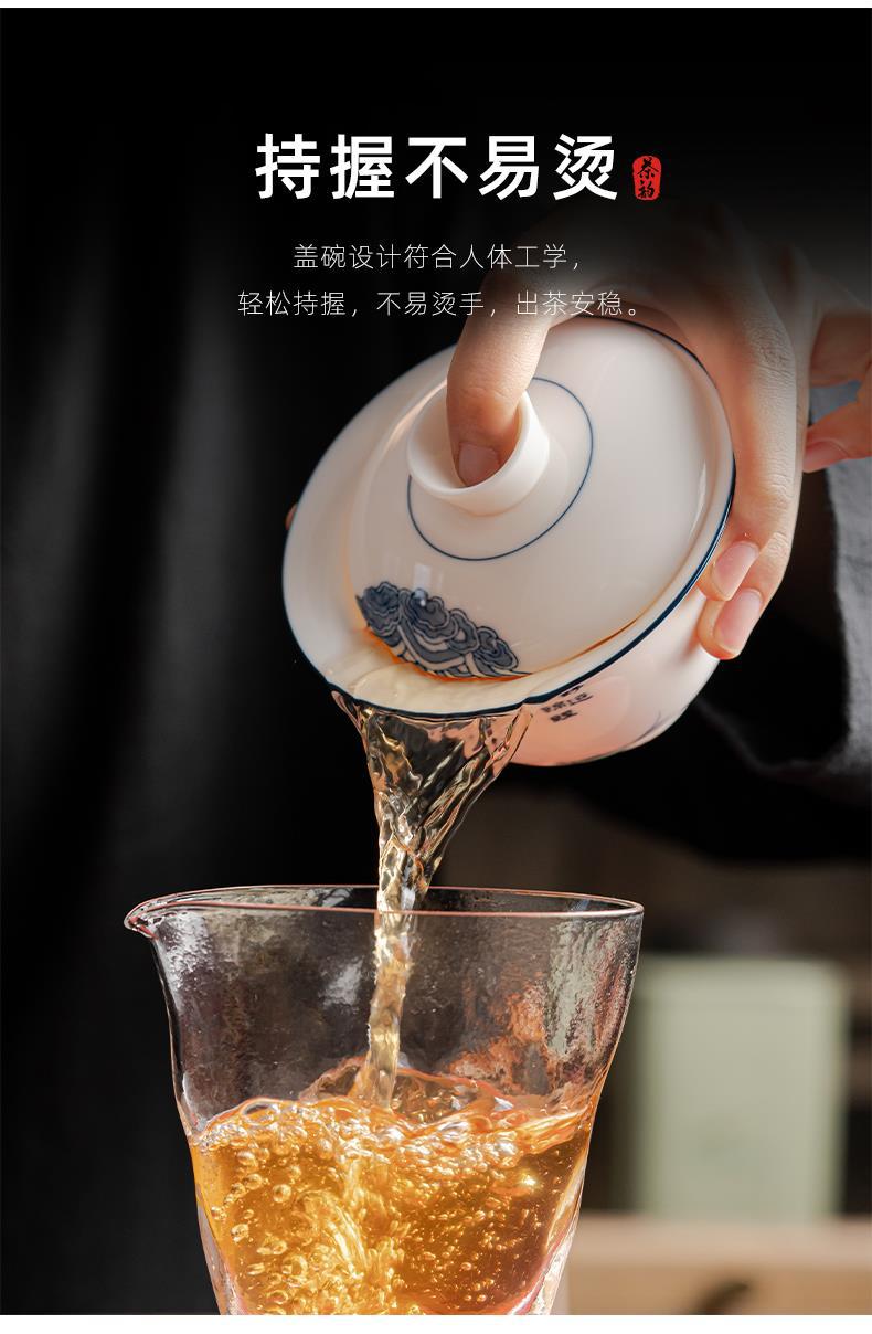 冰种璞玉瓷悬停防烫盖碗白瓷茶杯三才茶碗家用茶具大号不烫手单个