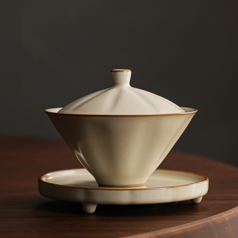 米黄汝窯笠三才蓋碗の高級敬茶碗の湯飲みは単独で手を焼くことなく工夫した茶器を開くことができます。
