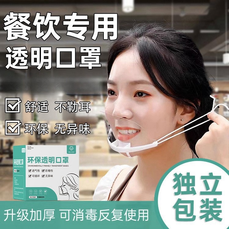 飲食透明マスクホテル料理人専用petプラスチックマスク笑顔食品つばよだれ防止マスク