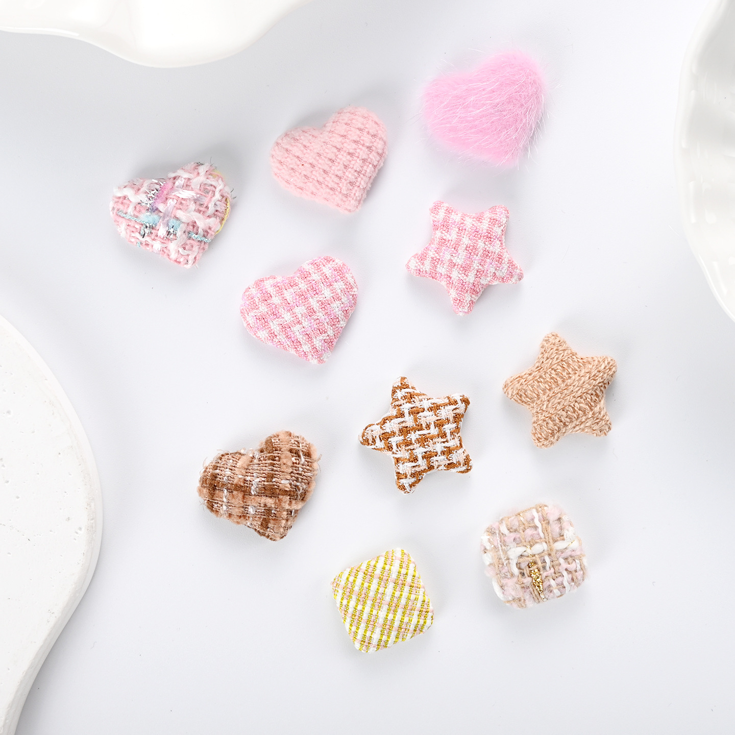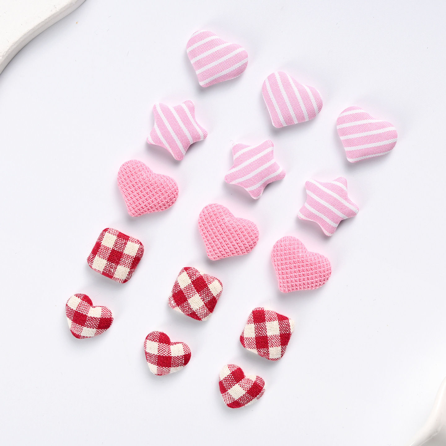 布艺粉色格子桃心平底扣饰品配件五角星包布扣纽扣方形布贴片配饰