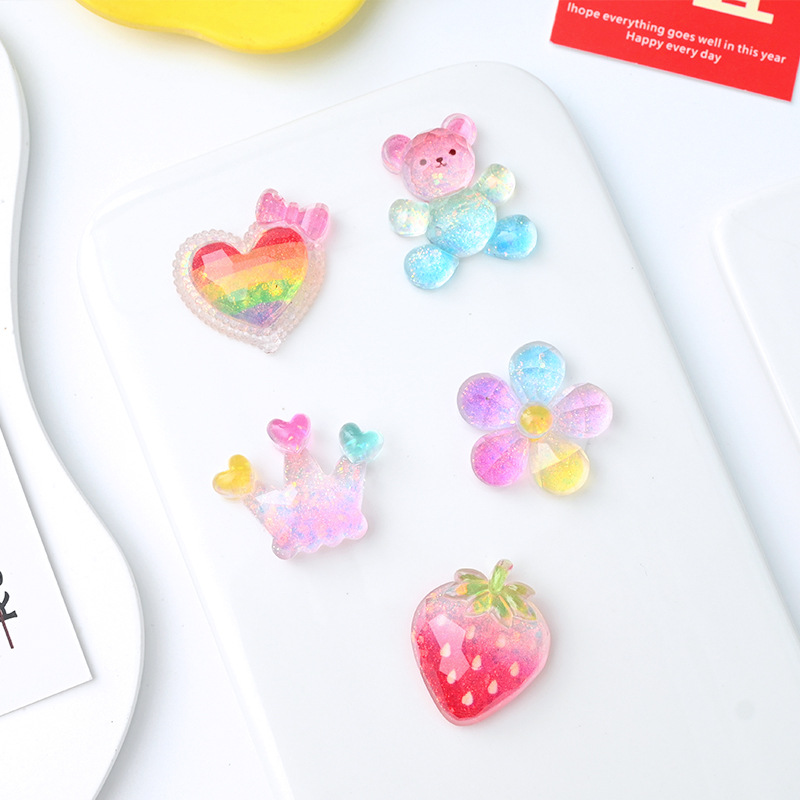 中号グラデーションカラー桃心熊クラウン花びらabゴムアクセサリー携帯ケース文房具コップアクセサリー