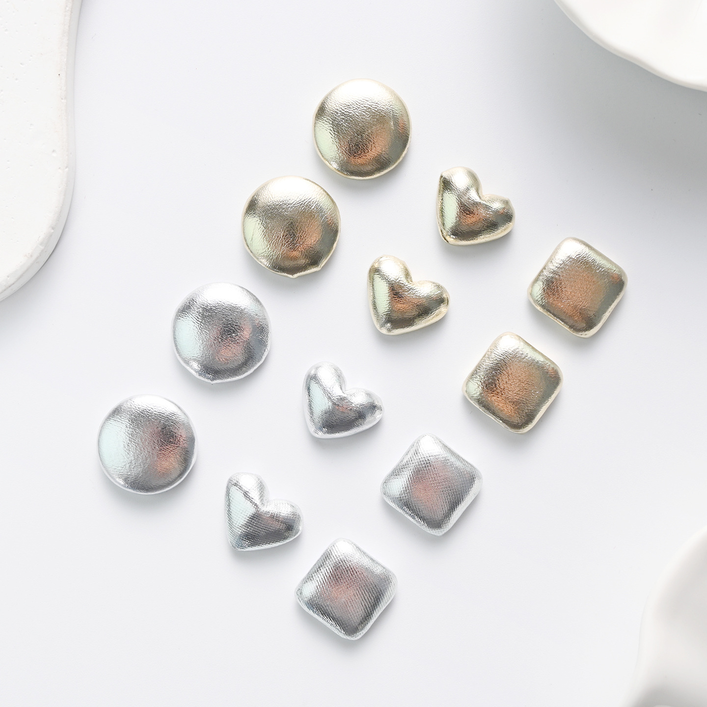 金色皮质小爱心包布扣银色半圆饰品配饰方块平底扣洞洞鞋扣配件