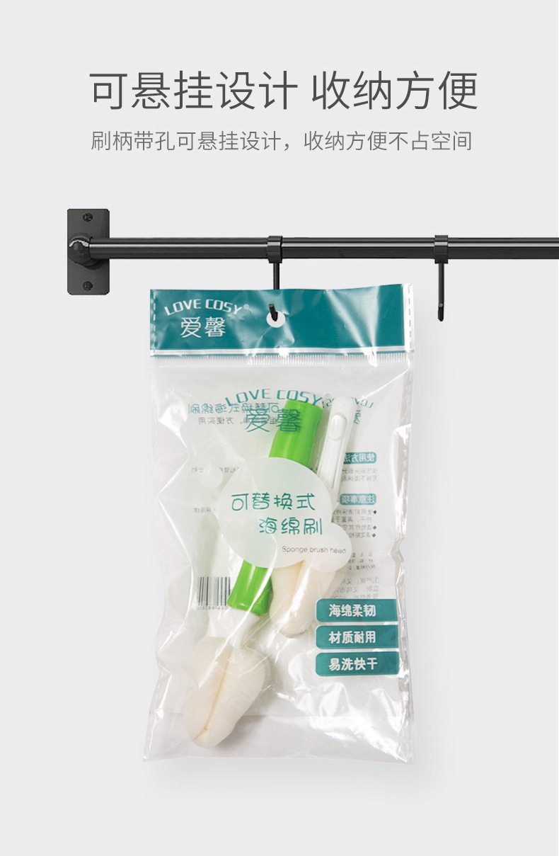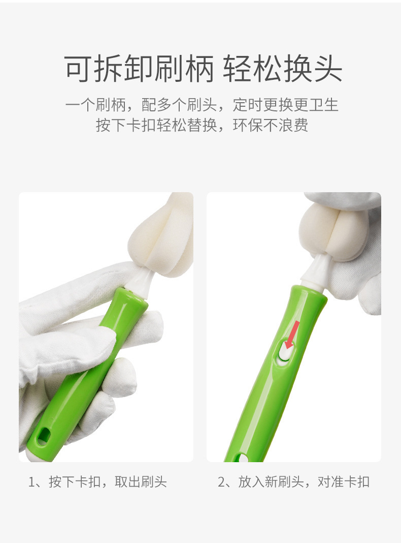 现货木浆棉圆形可拆卸刷头奶瓶清洗刷杯刷清洁刷 婴儿奶瓶刷