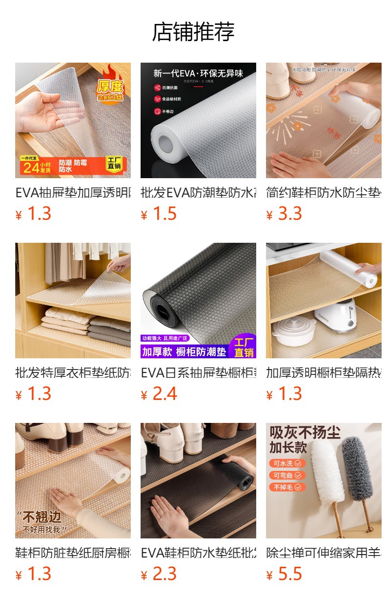 卸売EVA防湿マット、防水、ハイエンドキッチン耐油マット、キャビネットマット、滑り止めマット、冷蔵庫ワードローブ引き出しマット