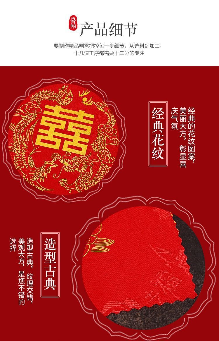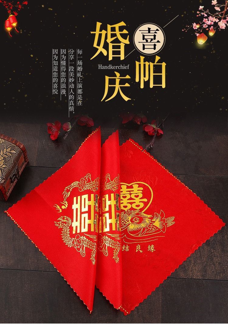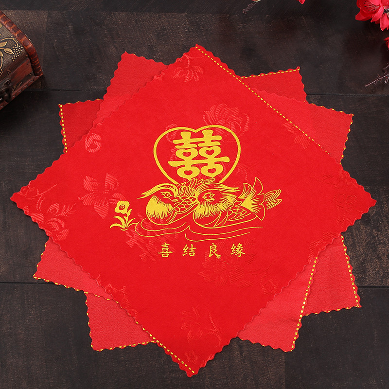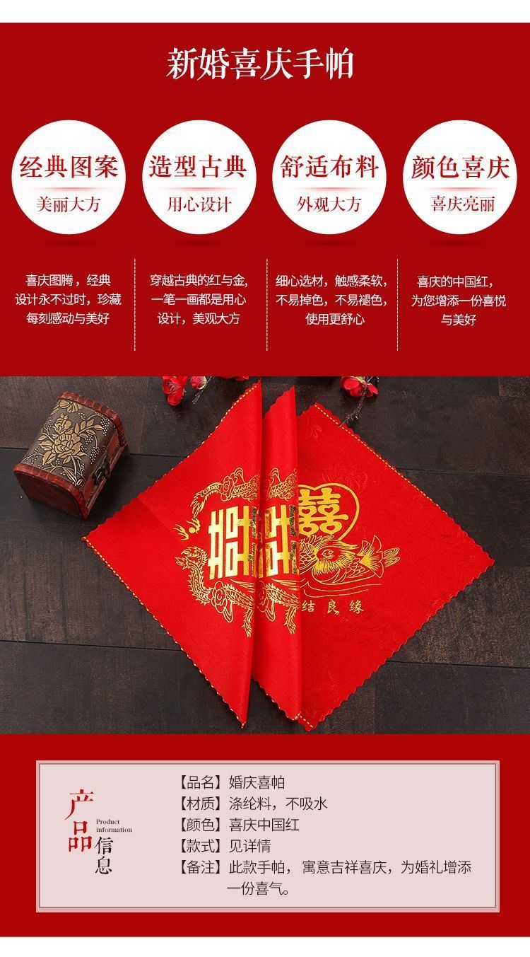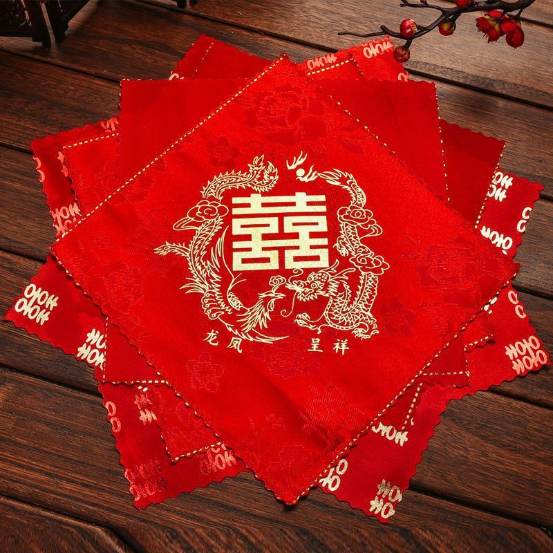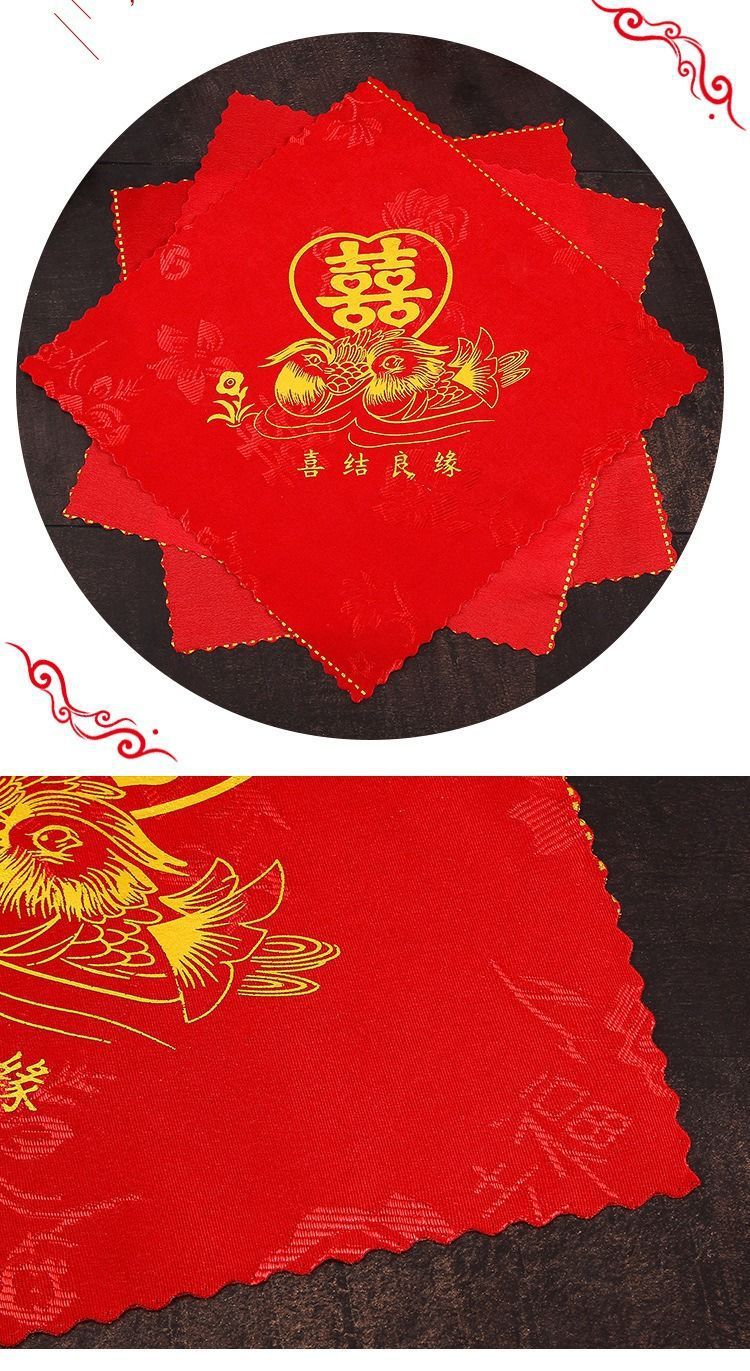 大紅喜パ結婚ハンカチ永結同心紅ハンカチ龍鳳喜字ハンカチ結婚祝い用品卸売り