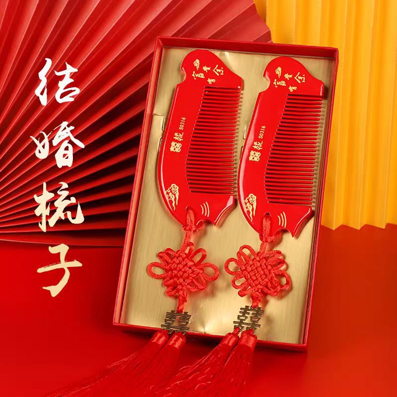 櫛の結婚のペアの結婚祝いの花嫁は嫁入りの化粧をします。