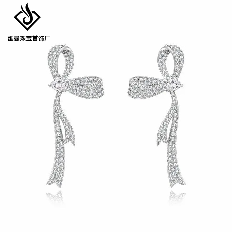 精致时尚蝴蝶丝带结耳钉女轻奢小众设计高级感镶钻耳环百搭款耳饰