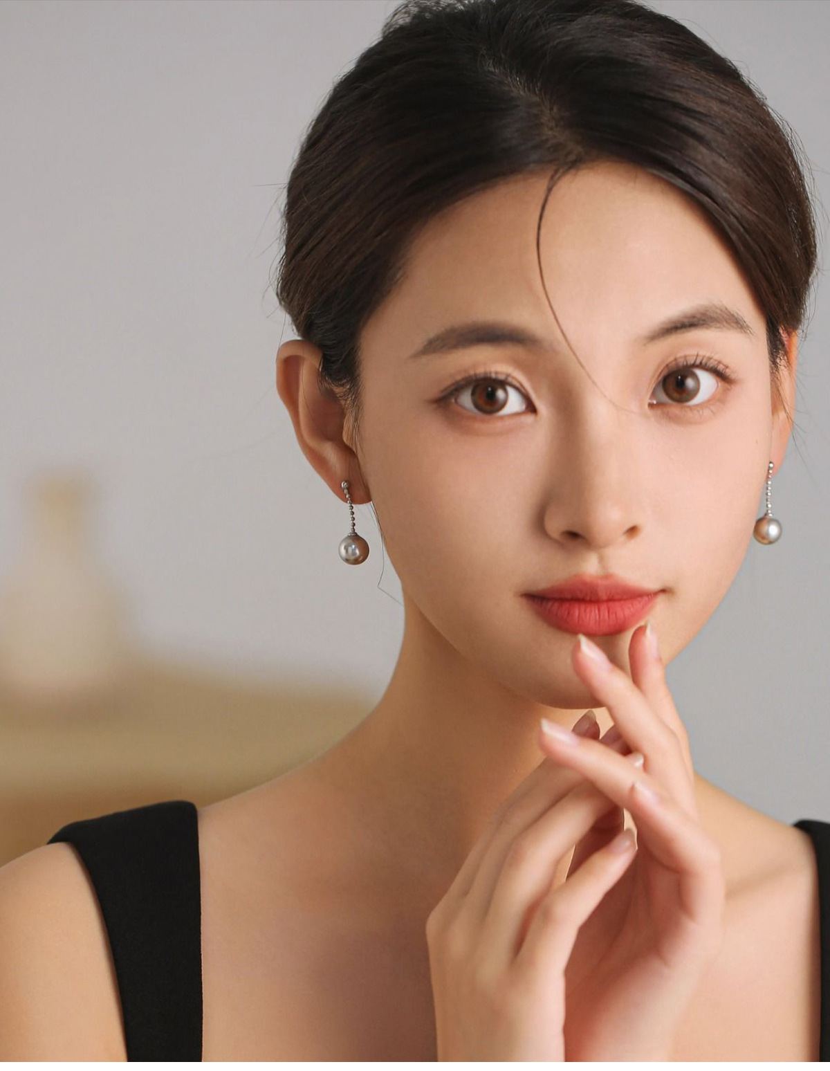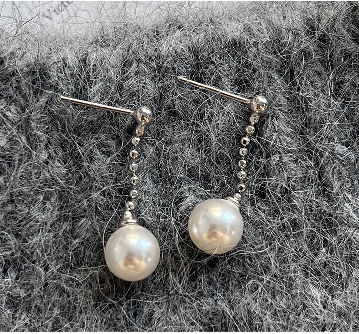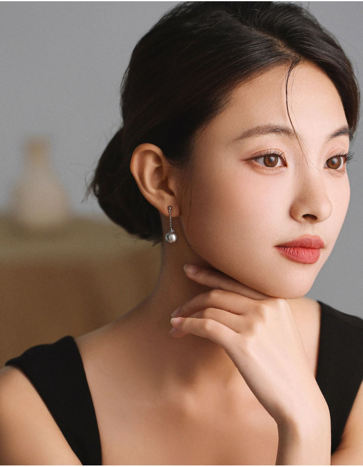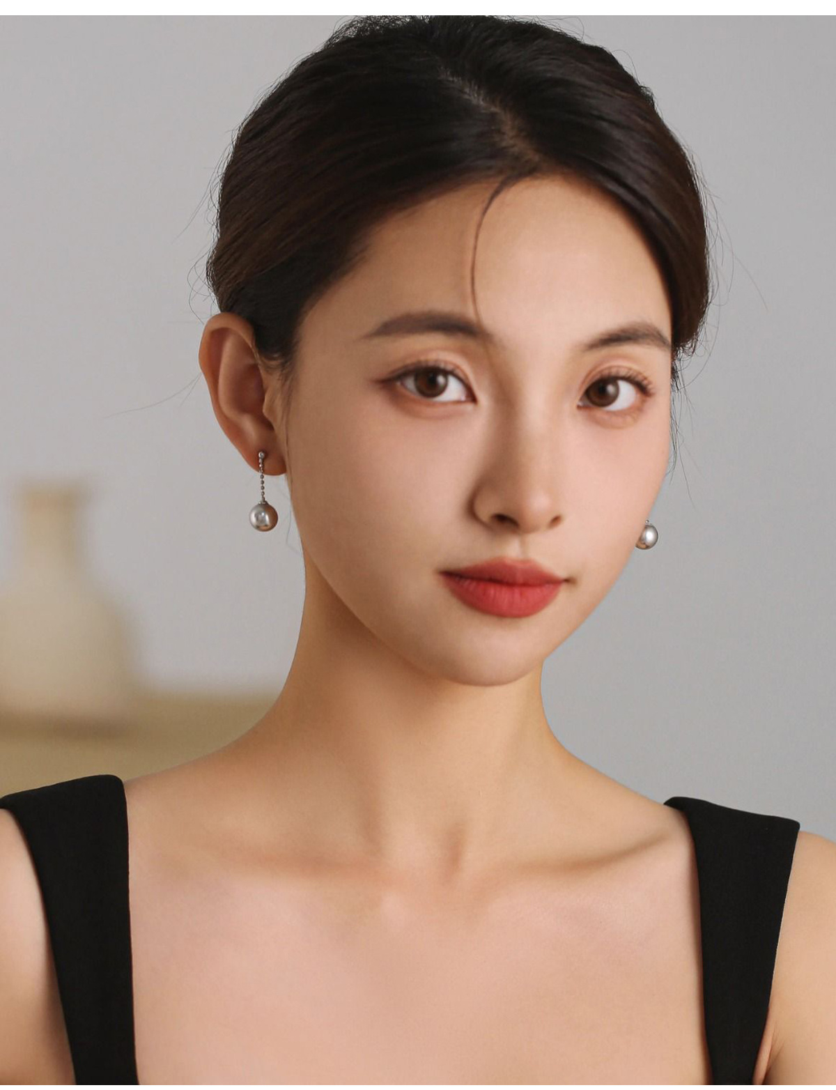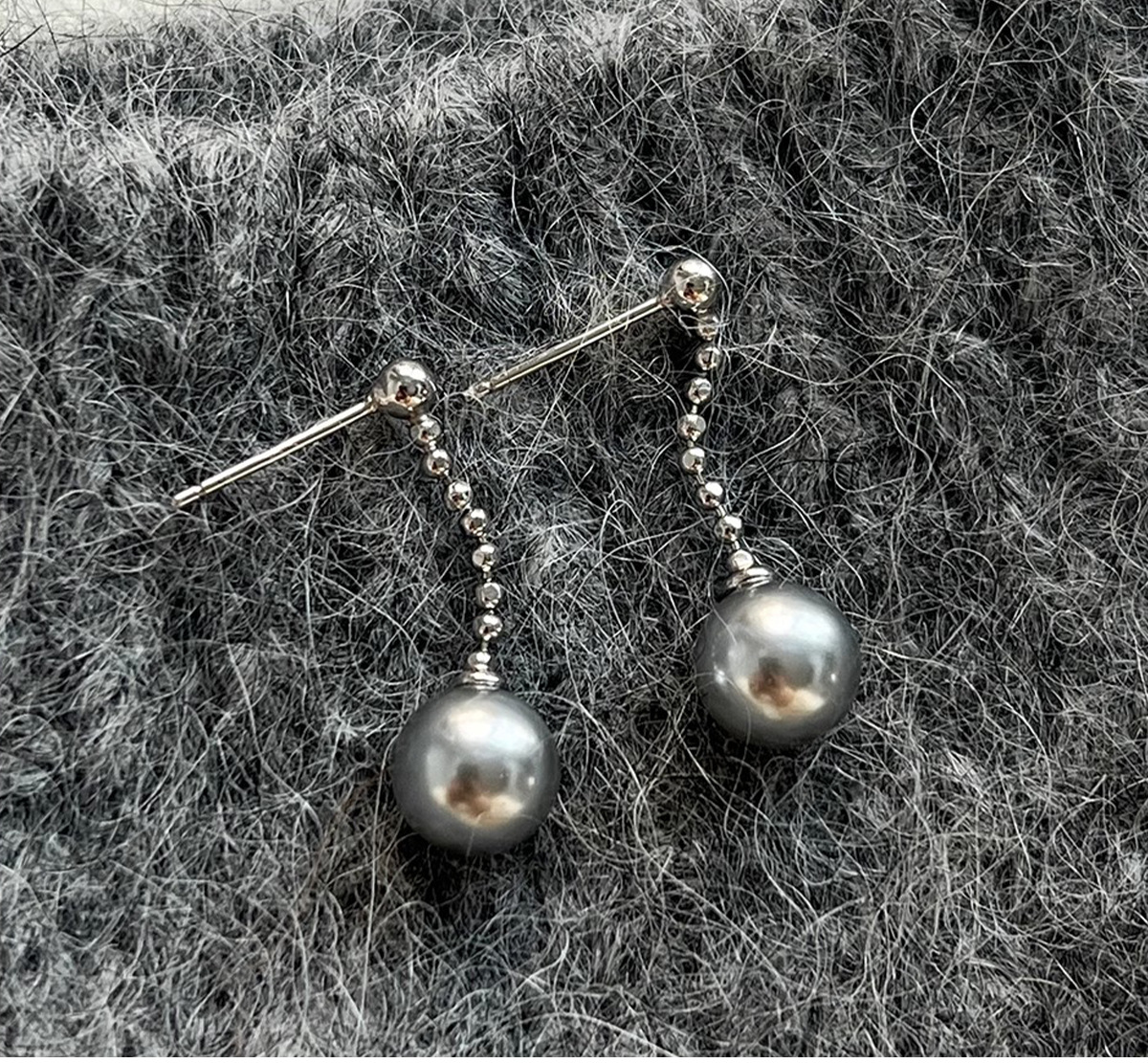 カラー S925純銀真珠流蘇ピアス【クリーム色】,S925純銀真珠流蘇ピアス【麻灰色】
