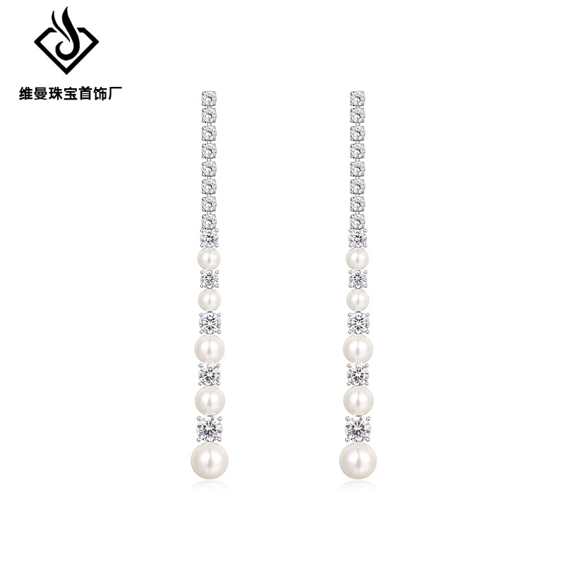 赵露思同款流苏珍珠锆石耳钉女轻奢小众设计高级感时尚优雅耳环饰