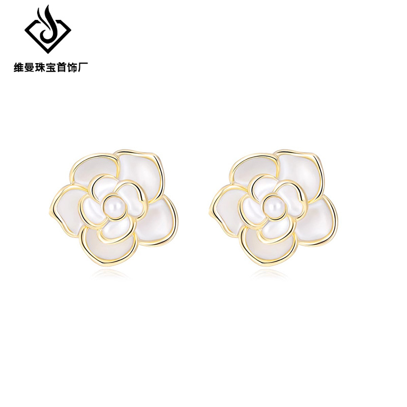 フランスのレトロなツバキの花のピアスの女性の軽い豪華な大衆の設計の高級感の気質の小さい香風のイヤリングの真珠の耳飾り
