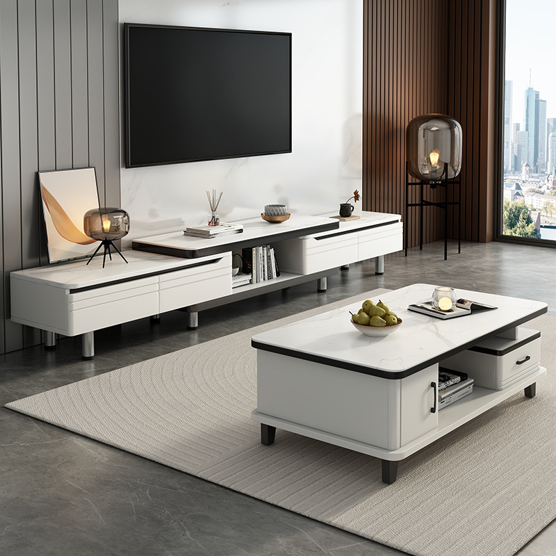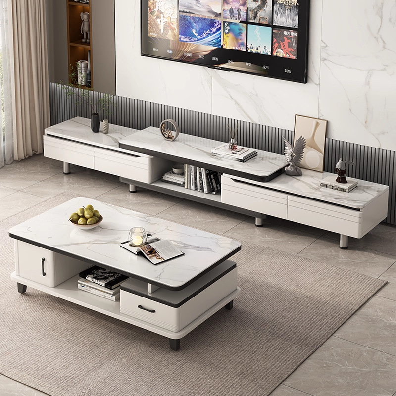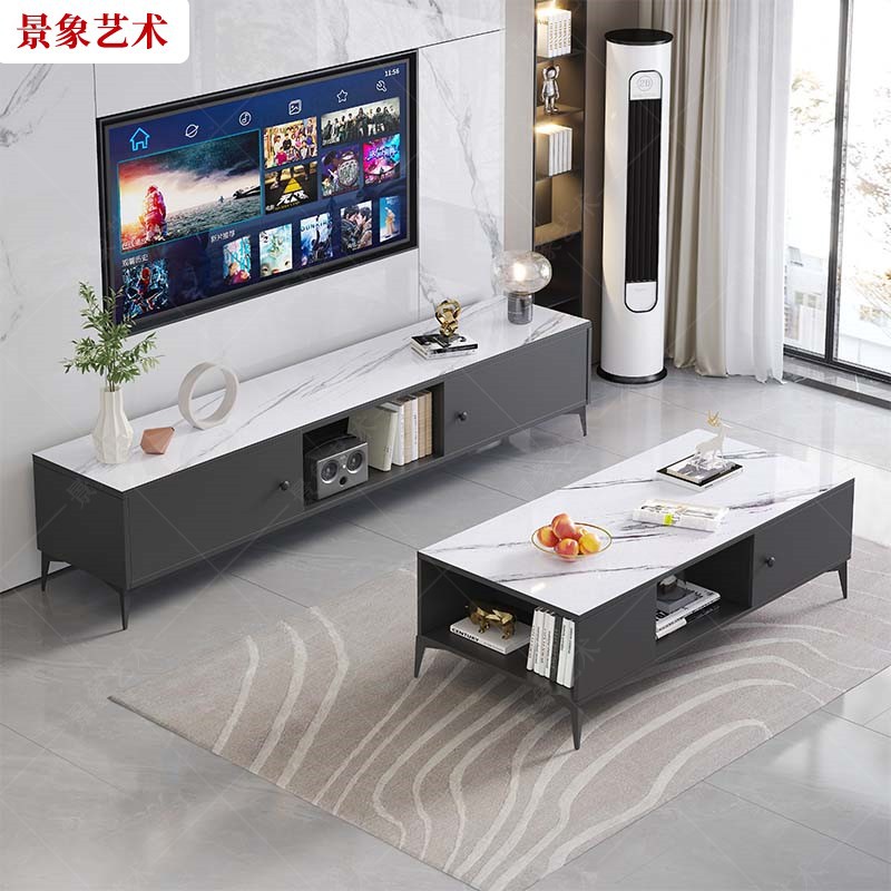 岩板电视柜客厅家用落地小户型2025新款简约伸缩茶几电视机柜组合