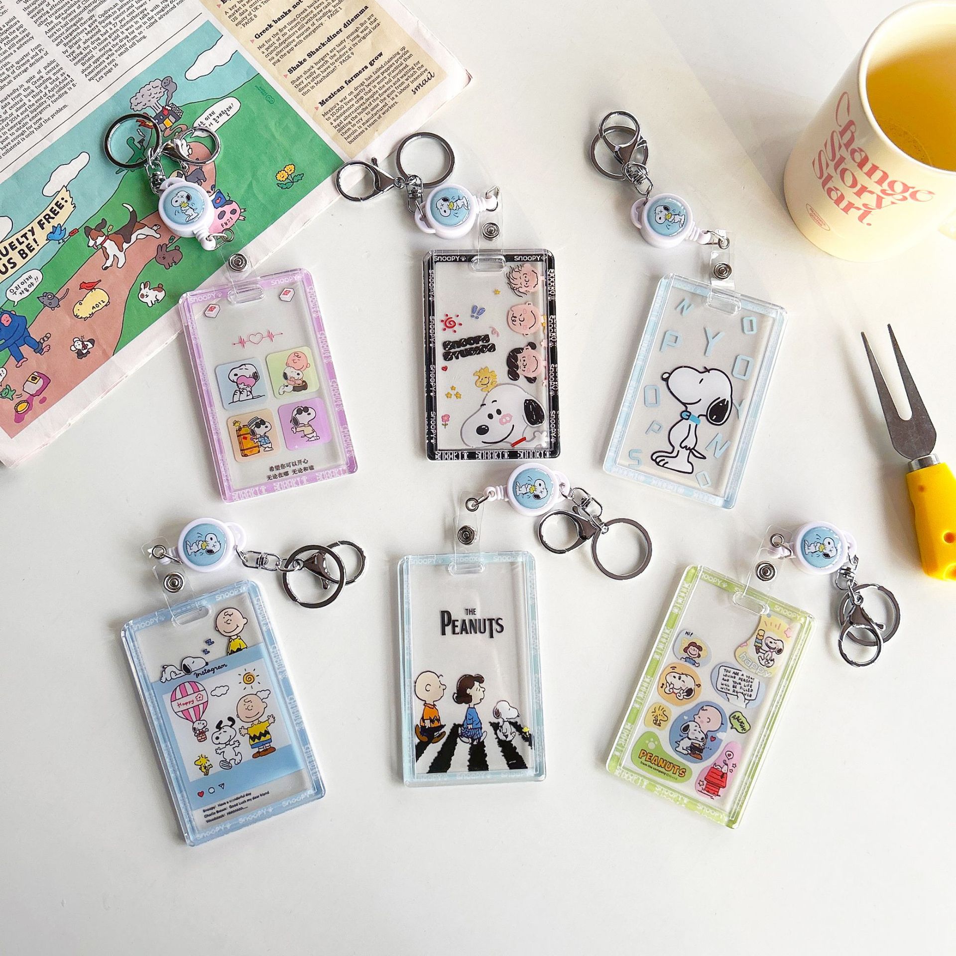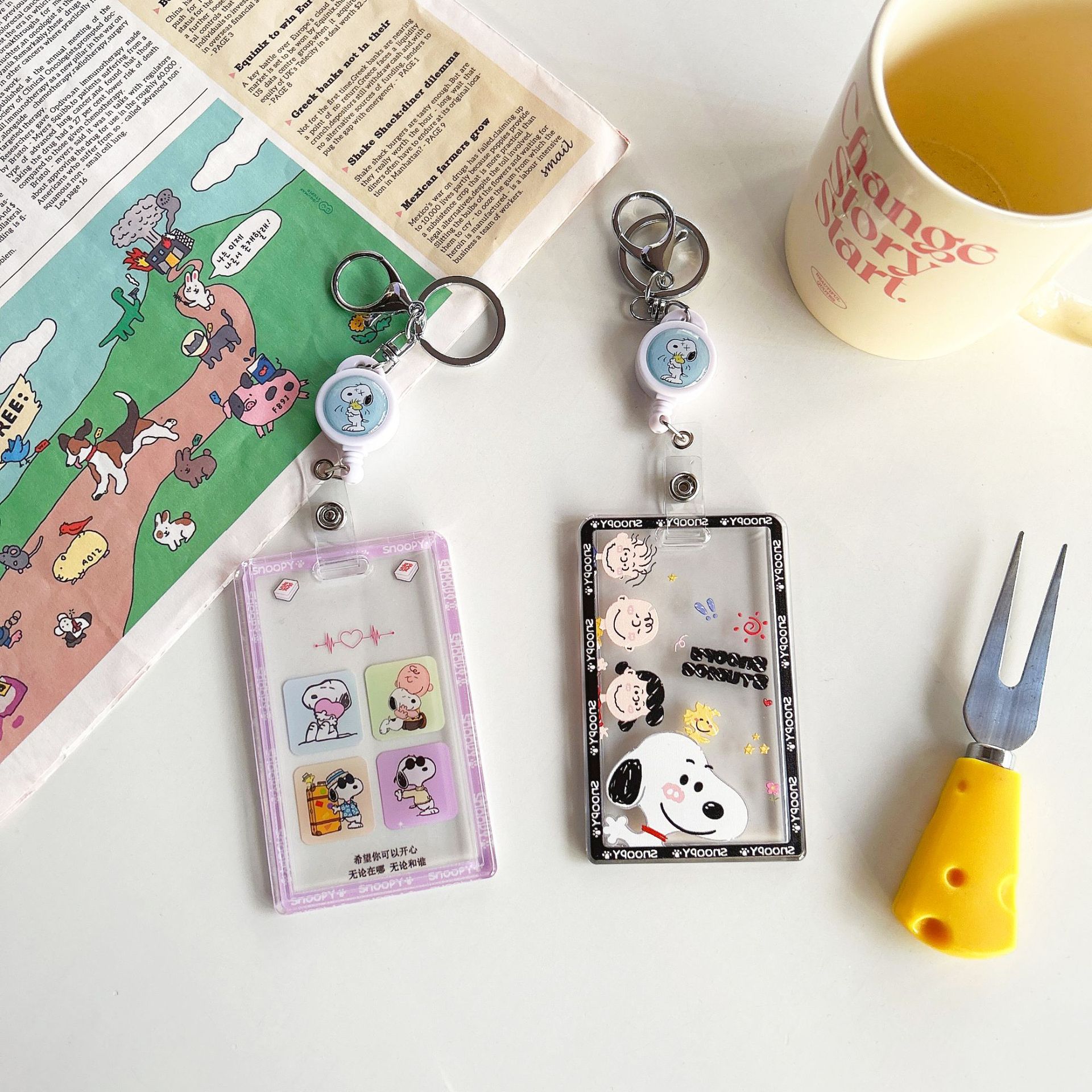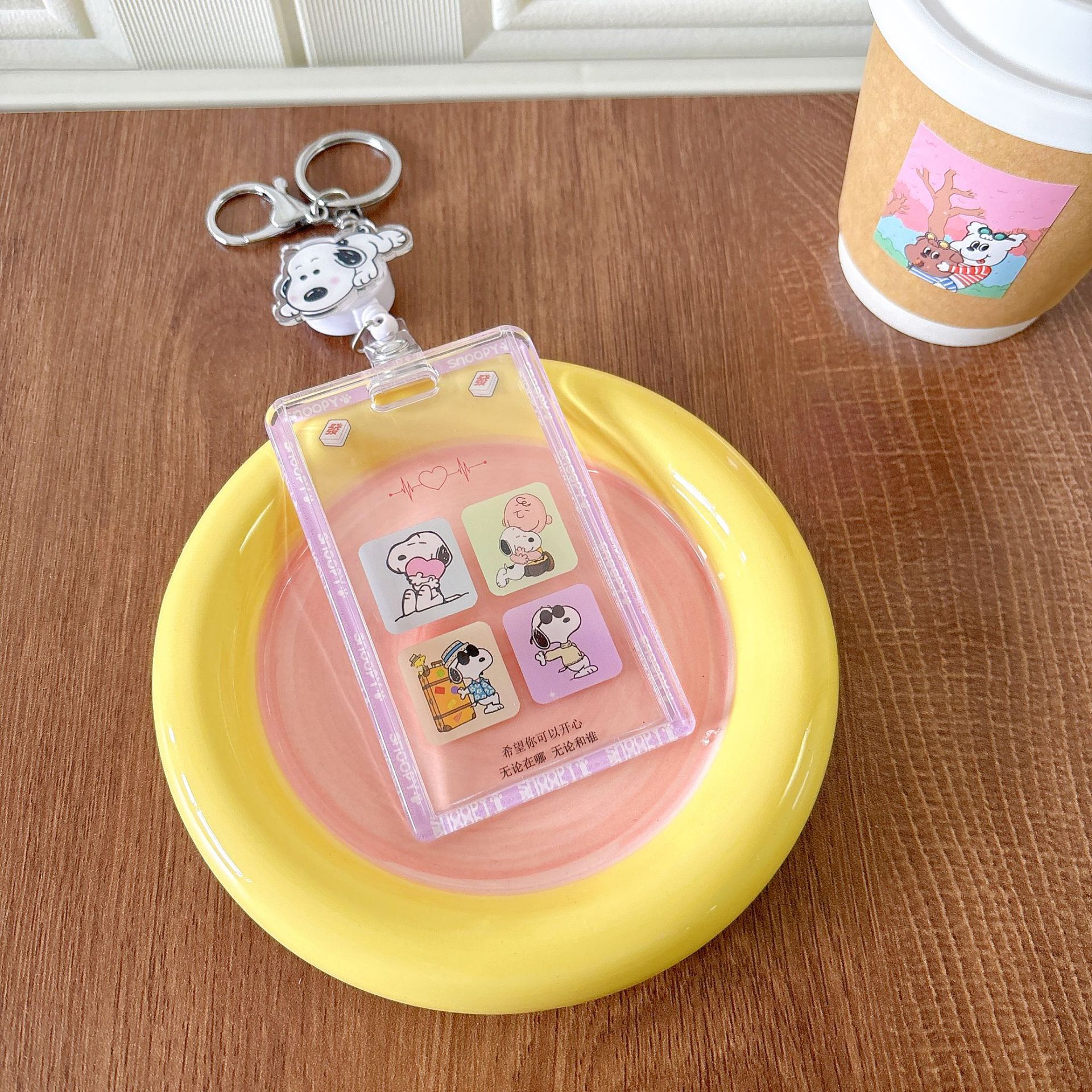 カード漫画落花生透明キャンパス紛失防止アクリルカードセットキーホルダー学生バッグストラップスヌーピー