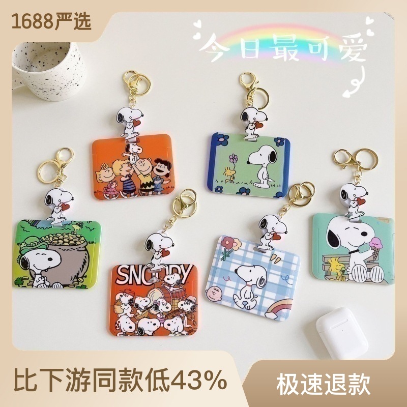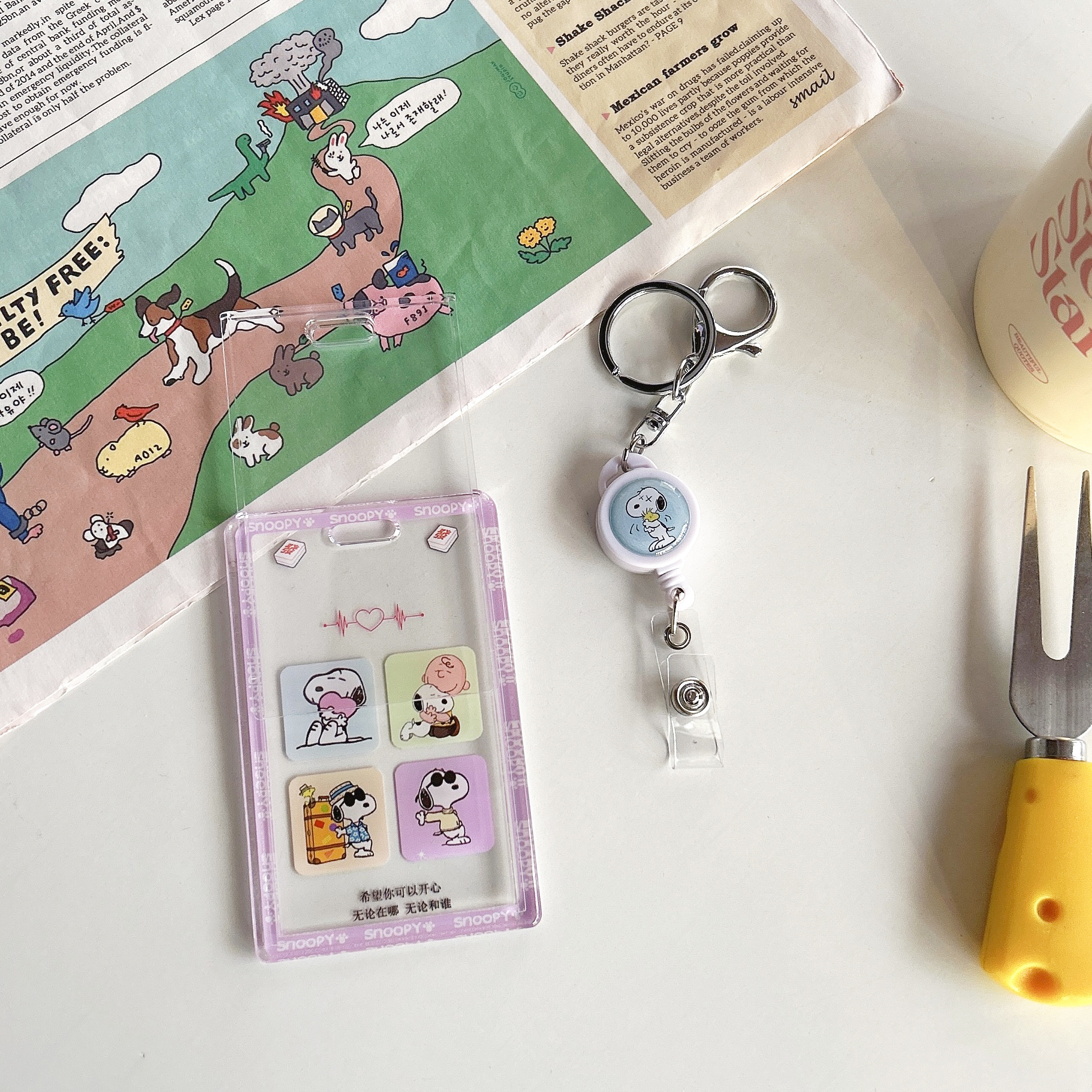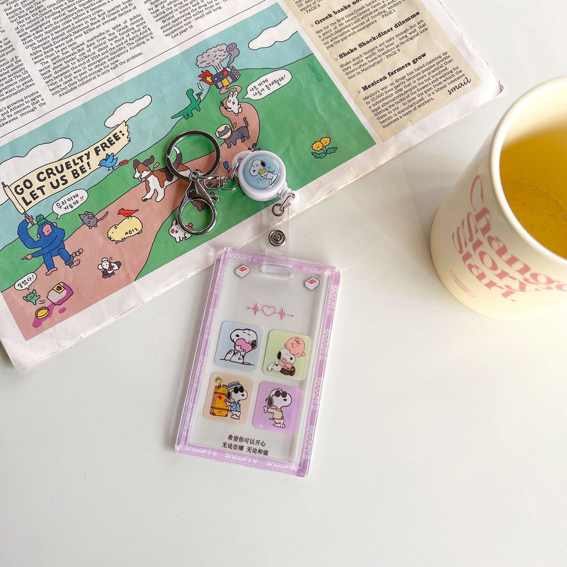 カード漫画落花生透明キャンパス紛失防止アクリルカードセットキーホルダー学生バッグストラップスヌーピー