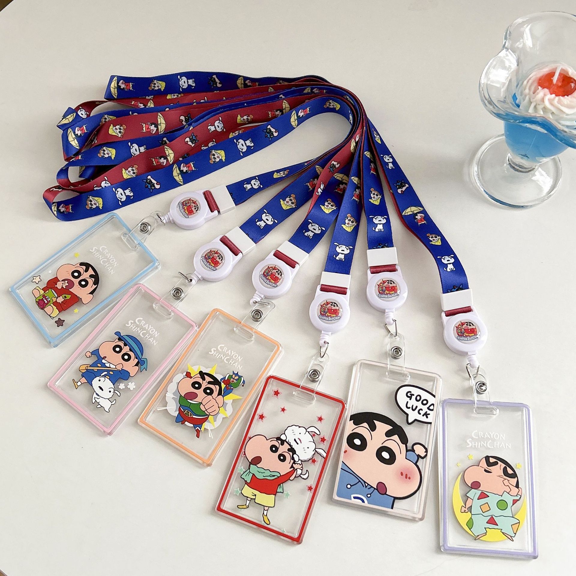 C系-伸缩易拉扣挂绳批发学卡套挂脖长绳调节工牌胸卡蜡笔小新透明