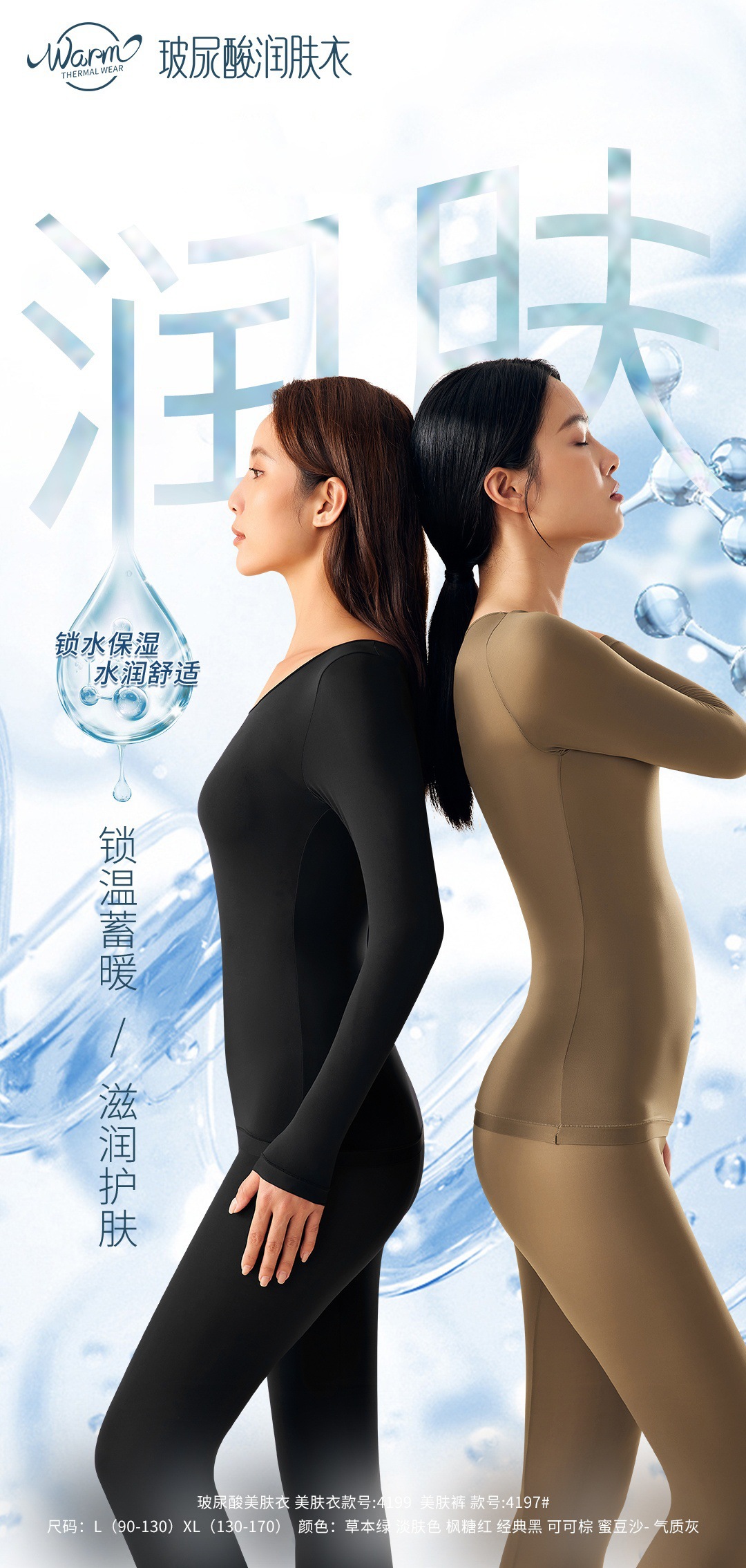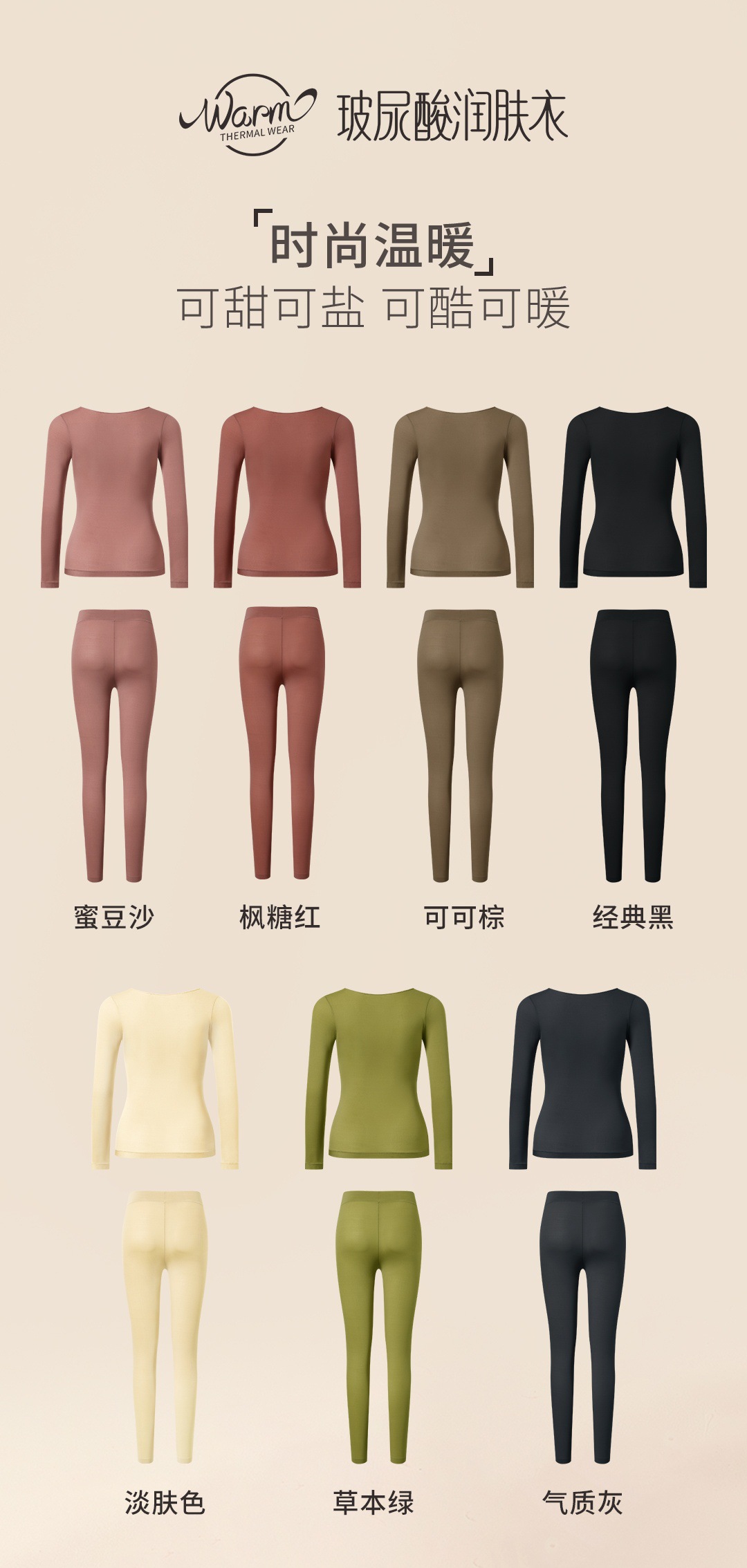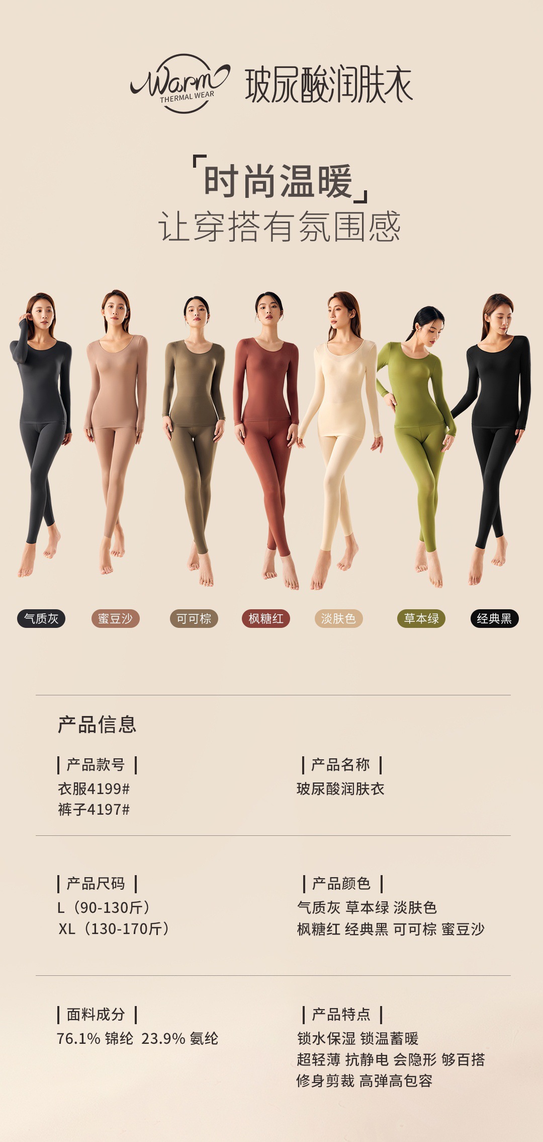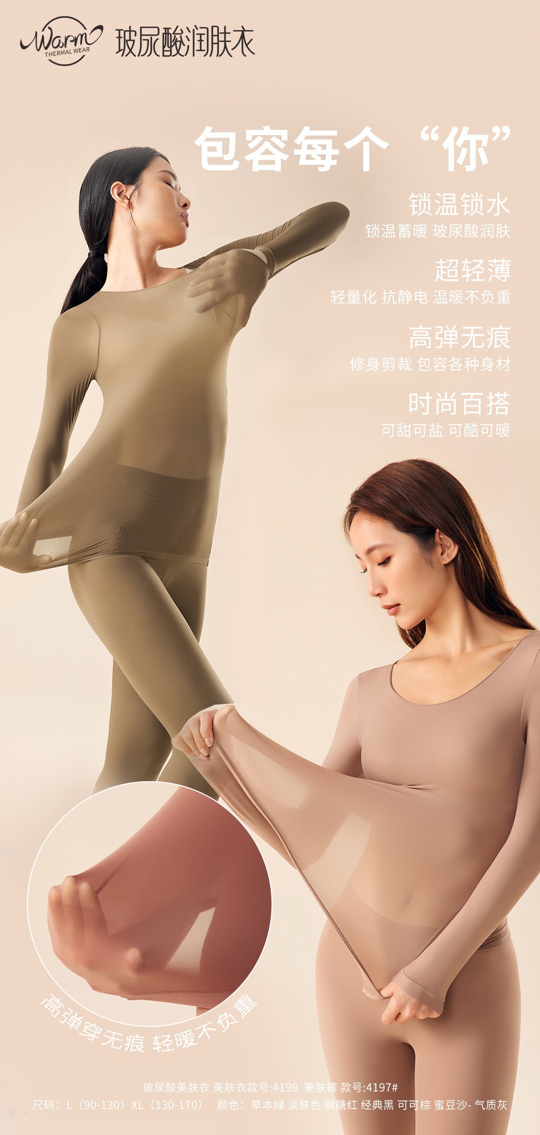 保温発熱美肌服秋冬ヒアルロン酸潤肌下着女性超薄無痕静電気防止修身セット
