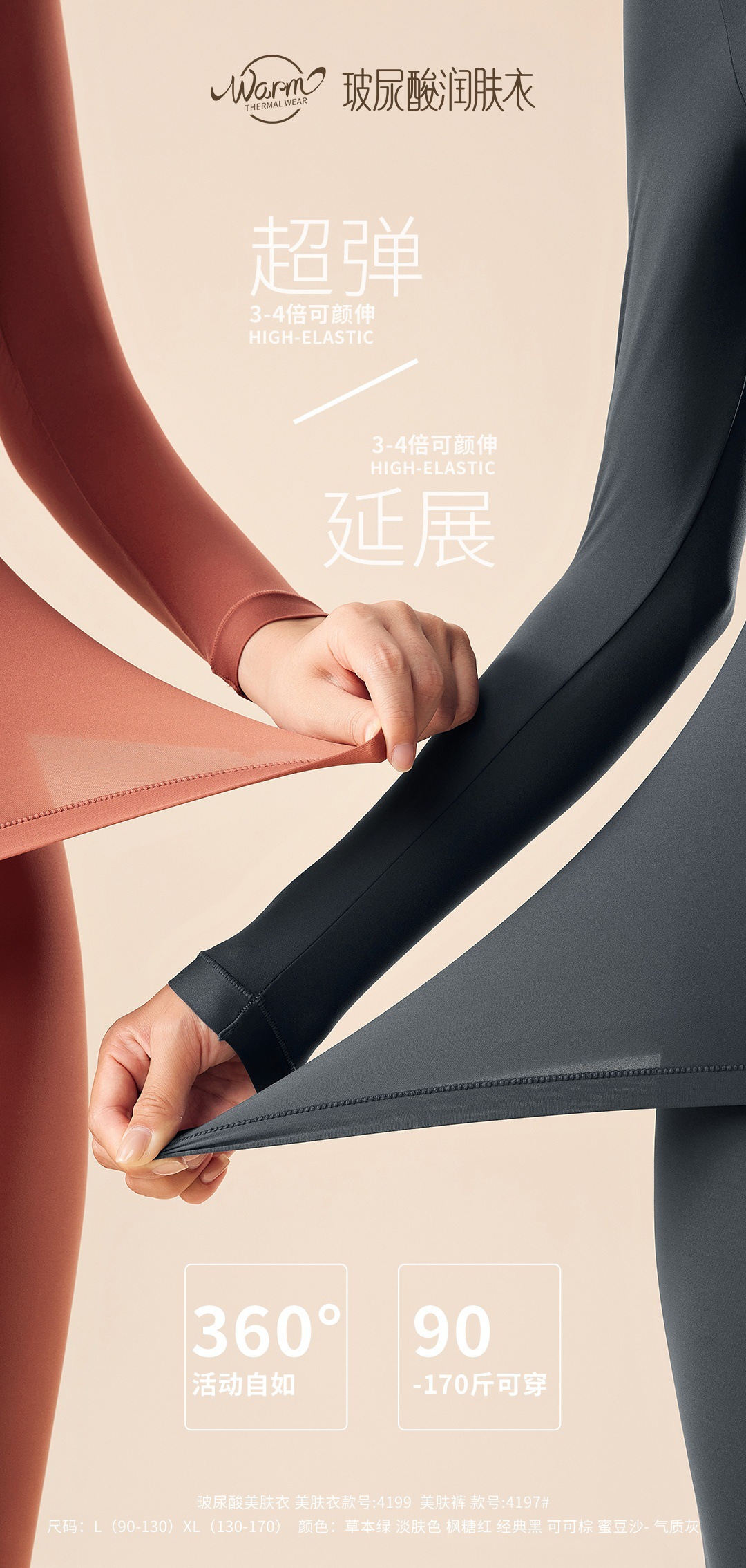 超薄ヒアルロン酸潤肌保温スーツは、目に見えない快適な高弾修身美容服女性秋衣秋ズボン
